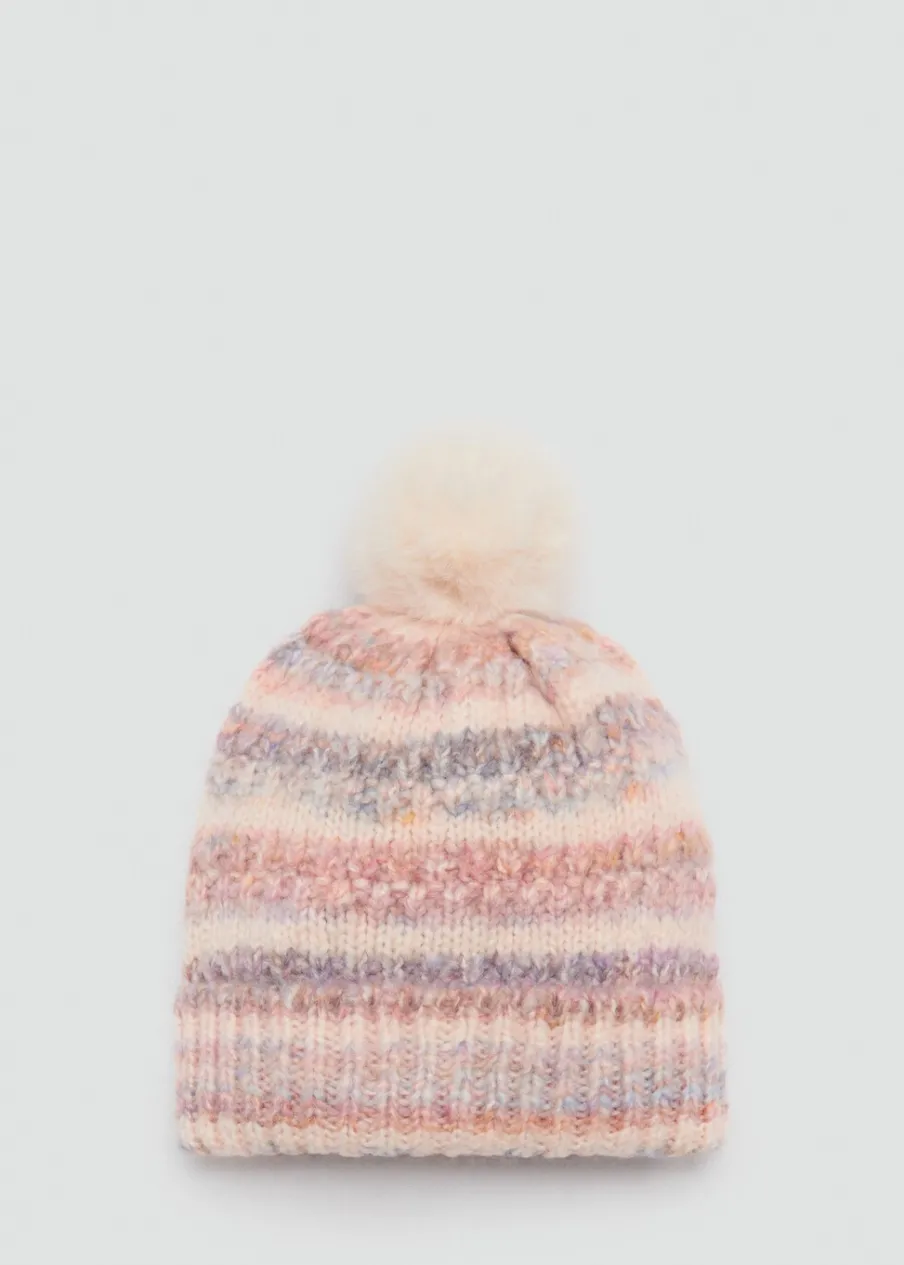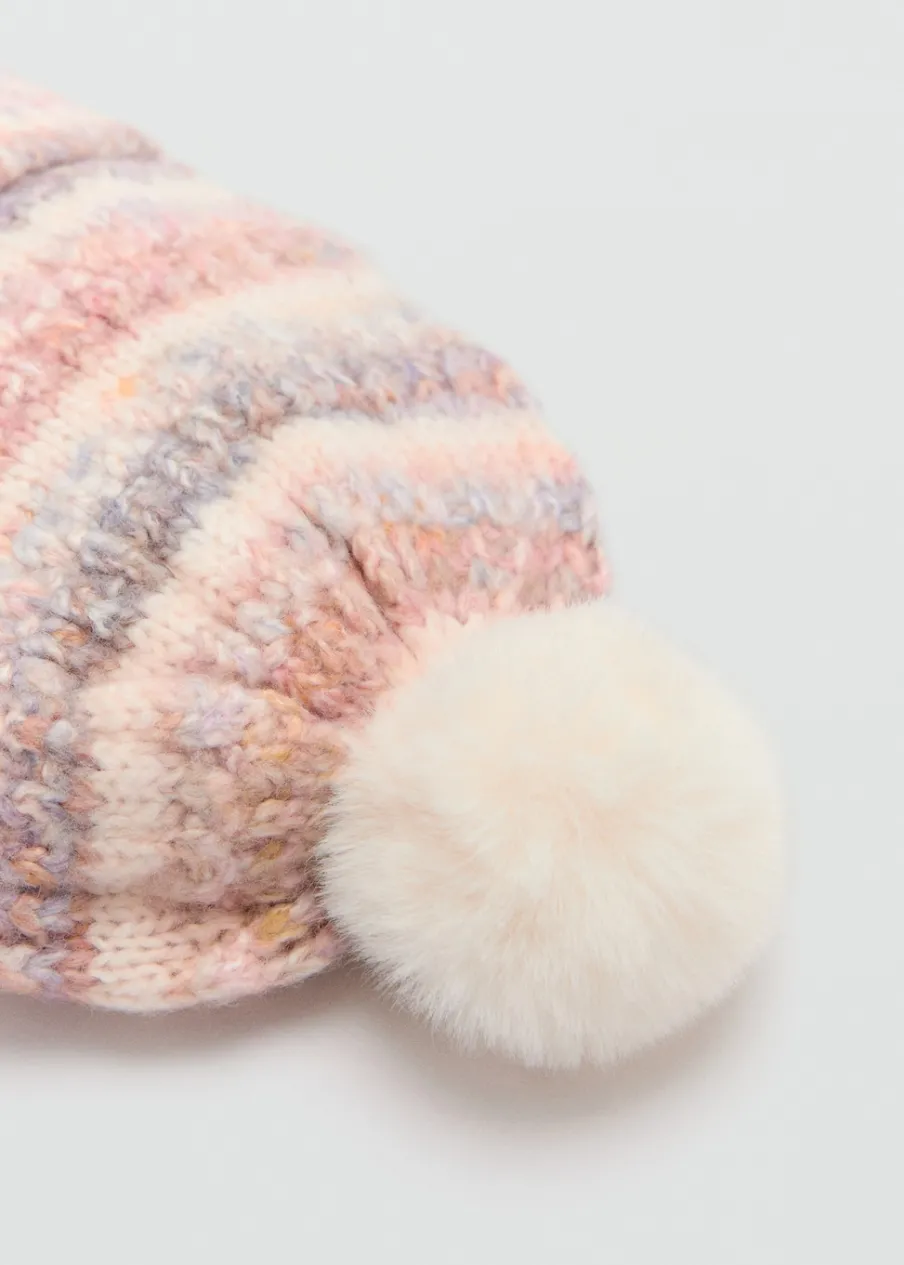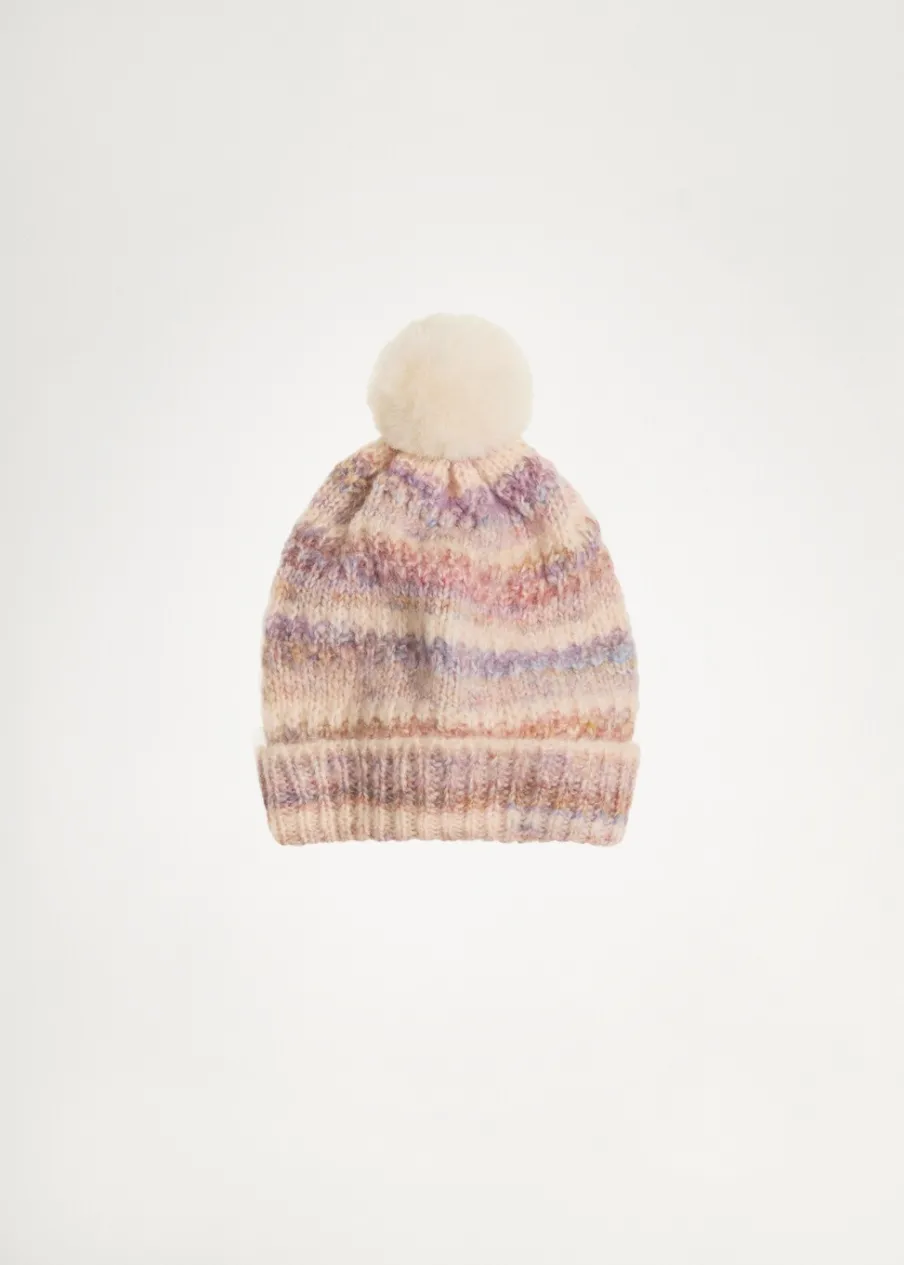 Dla tej czapki dostępny jest pasujący szalik do kompletu. Dzianina. Dwukolorowe. Detal z pomponem.