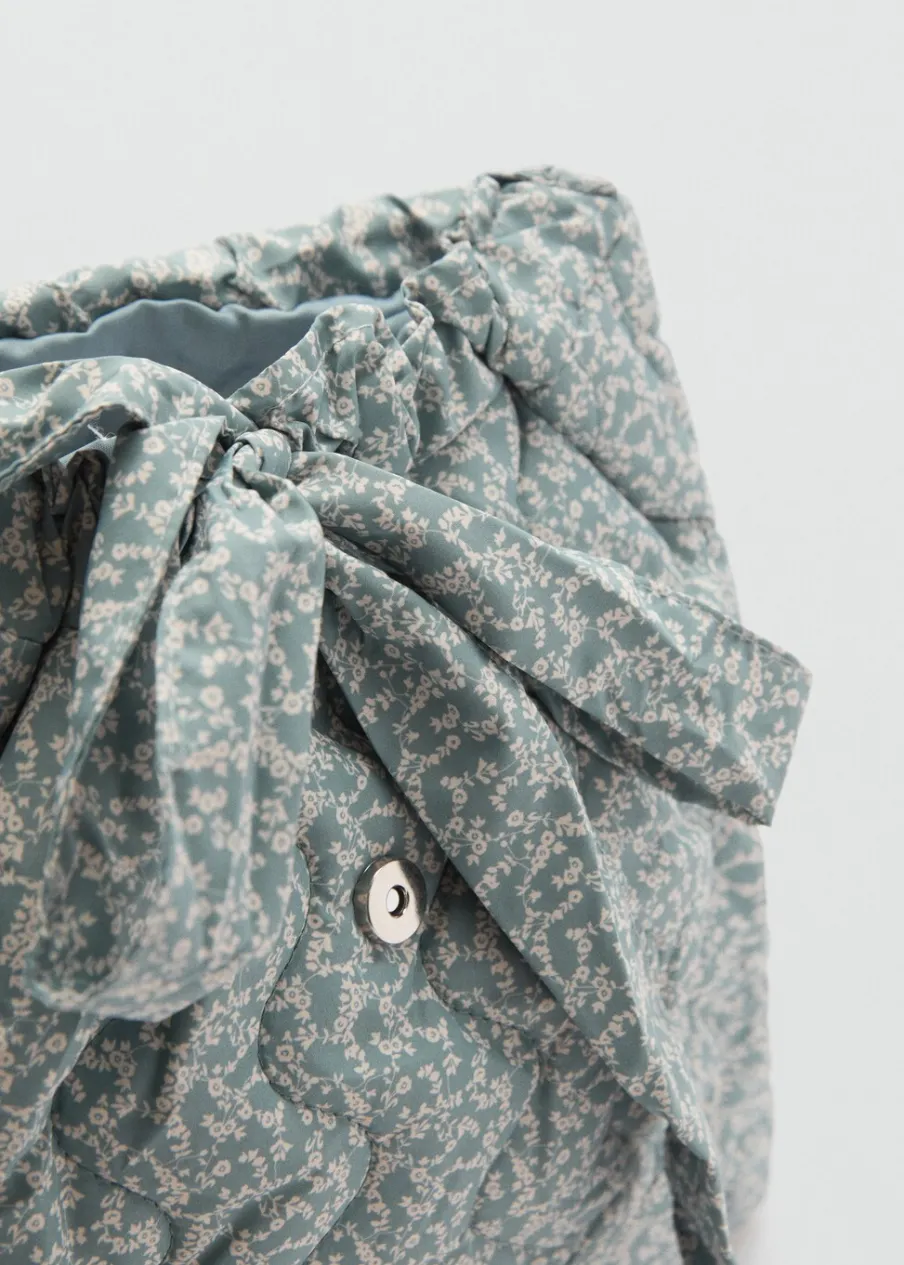 Model pikowany. Kwiatowy wzór. Wiązane zapięcie. Ukryte zapięcie na magnes.