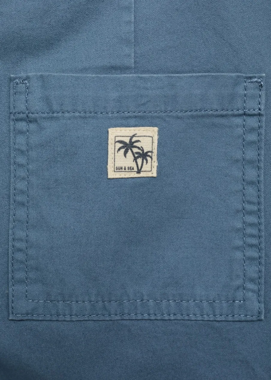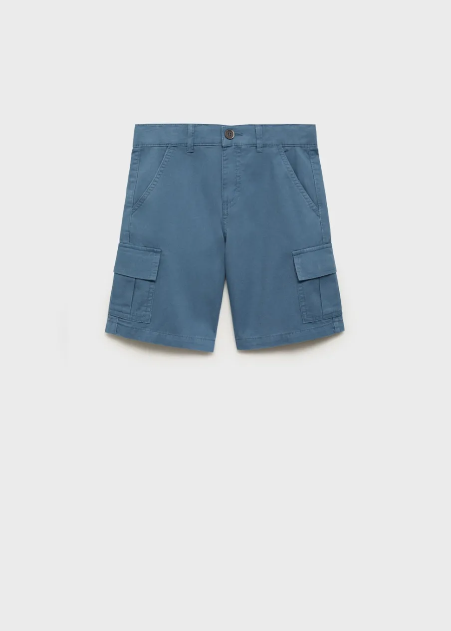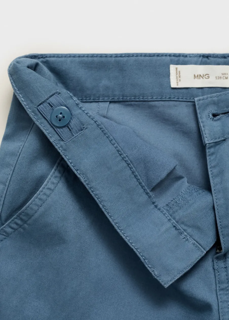 Bawełna 100%. Model prosty. Dwie kieszenie cargo. Dwie kieszenie z przodu. Dwie kieszenie nakładane z tyłu. Szlufki. Regulowany pas. Zapięcie na guzik z przodu.