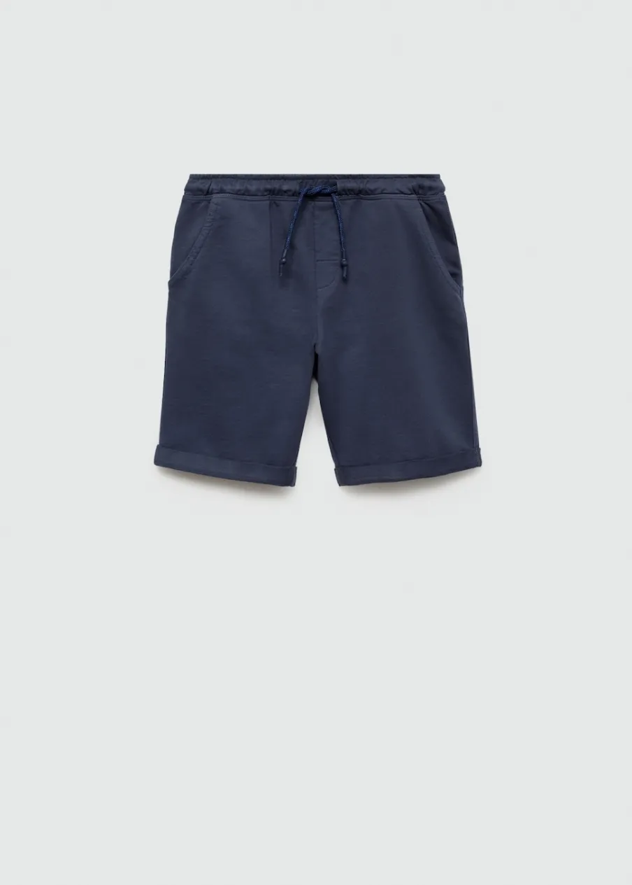 Bawełna 100%. Krótki krój. Model prosty. Elastyczny pas. Dwie kieszenie z przodu. Zapięcie ze sznurkiem do regulacji.