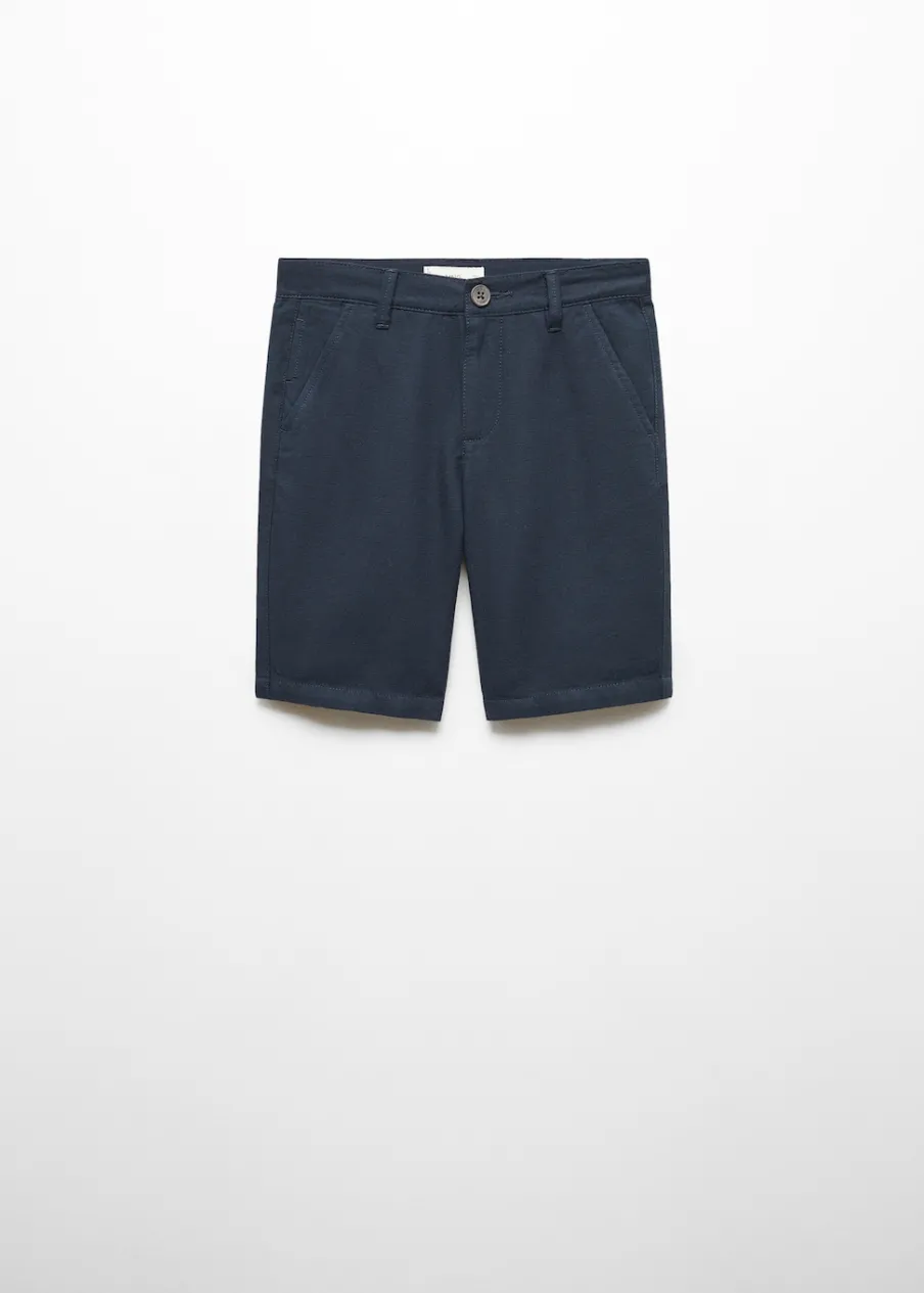Kolekcja wizytowa. Tkanina mieszanka bawełny i lnu. Model prosty. Krótki krój. Szlufki. Dwie kieszenie z przodu. Dwie wpuszczane kieszenie z tyłu. Zapięcie na suwak i guzik.