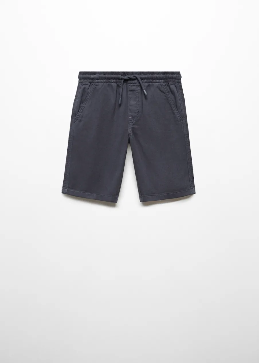 100% bomull. Krótki krój. Model prosty. Elastyczny pas. Dwie kieszenie z patką. Dwie kieszenie na guzik z tyłu. Obóz letni.