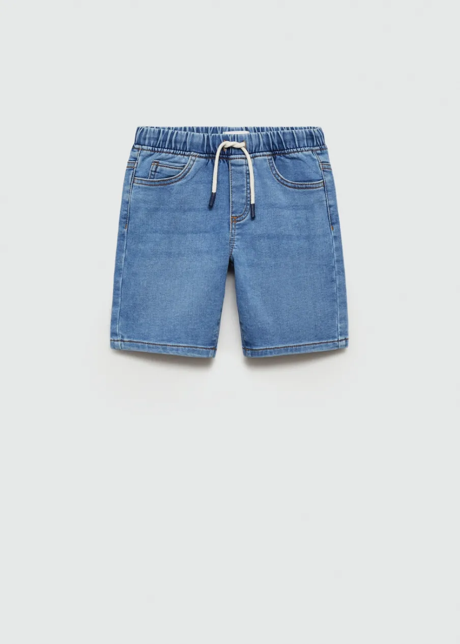 Tkanina bawełniana w dżinsowym stylu. Model prosty. Krótki krój. Elastyczny pas. Pięć kieszeni. Wiązanie na sznurek.