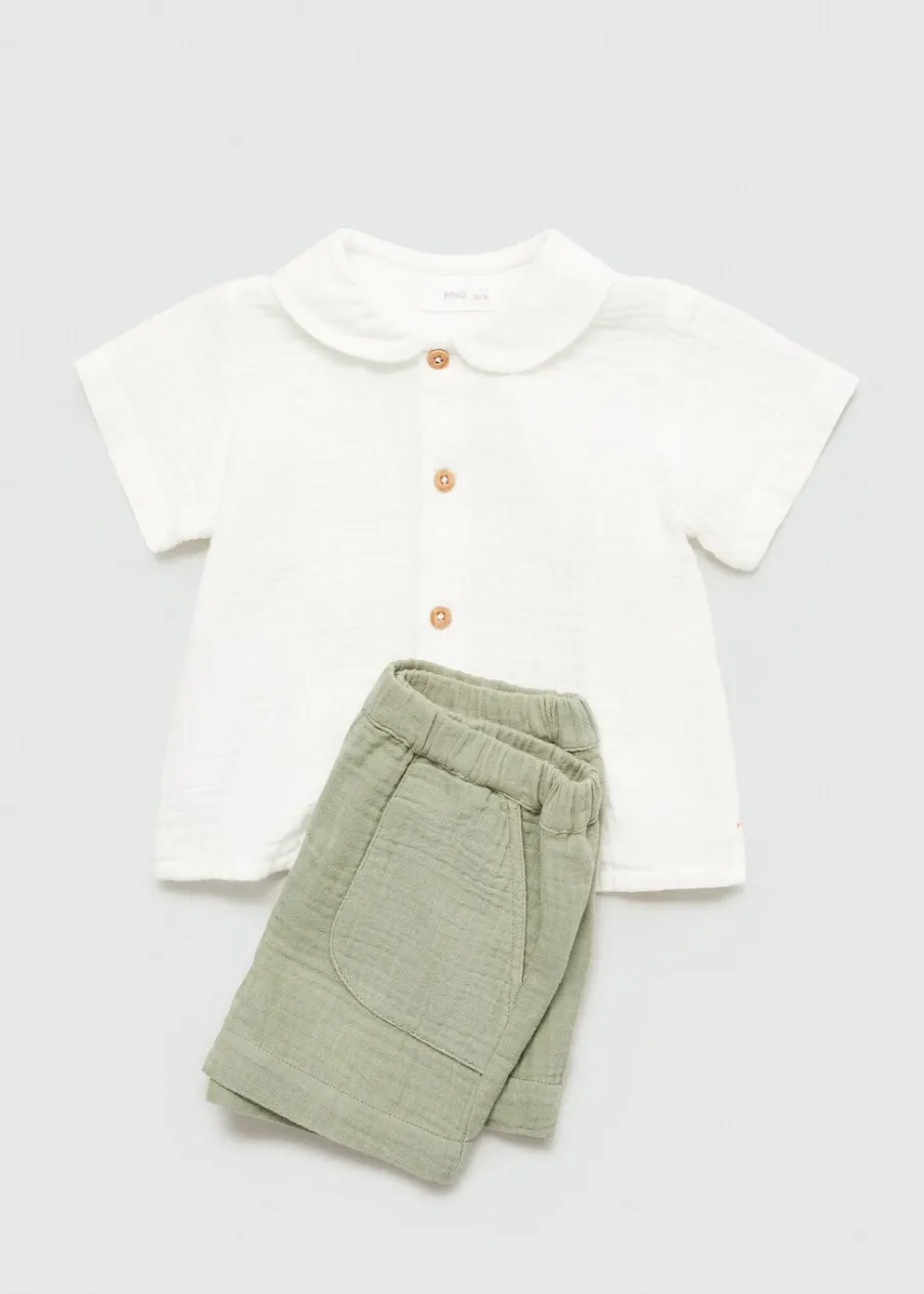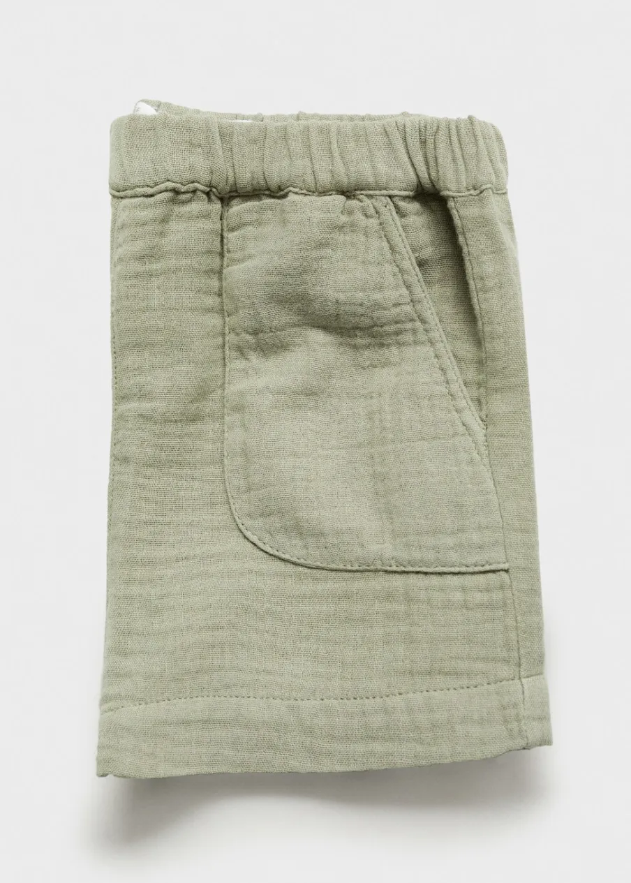100% bomull. Kreszowana tkanina. Model prosty. Krótki krój. Elastyczny pas. Bez zapięcia. Dostępny zestaw total look.