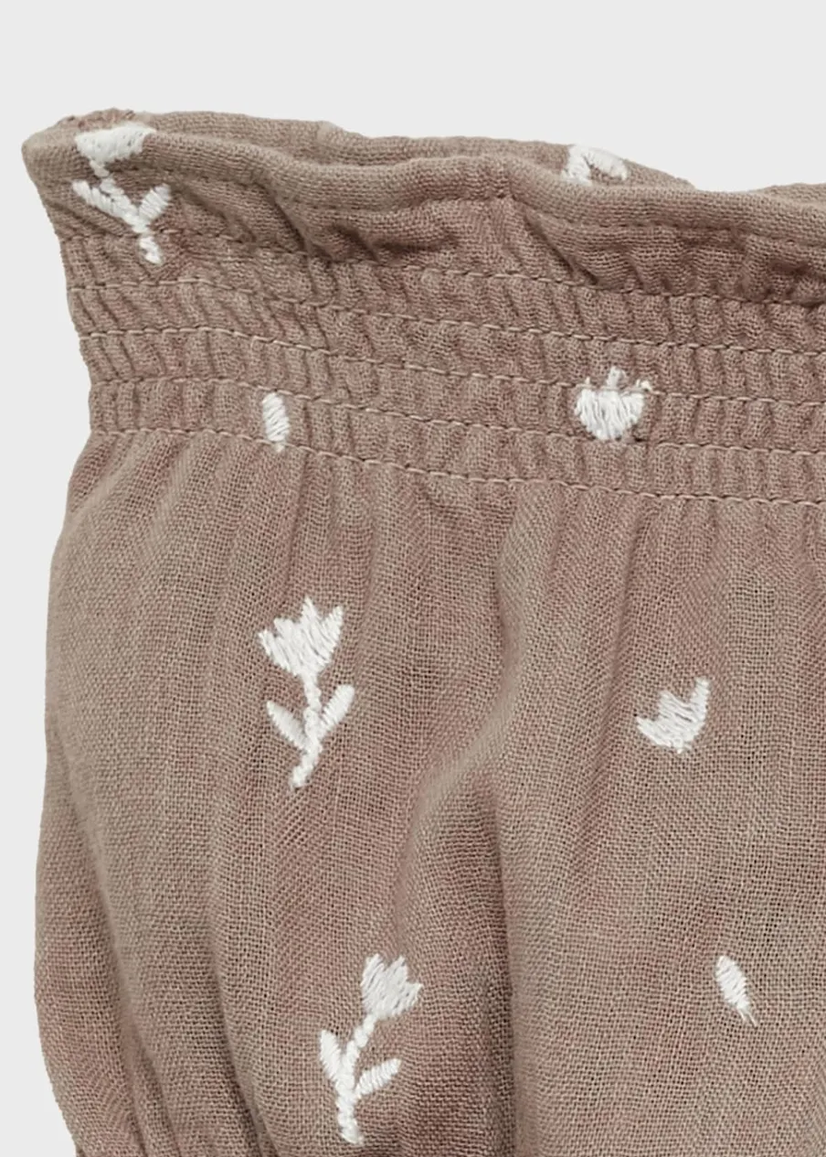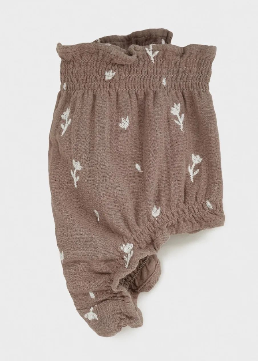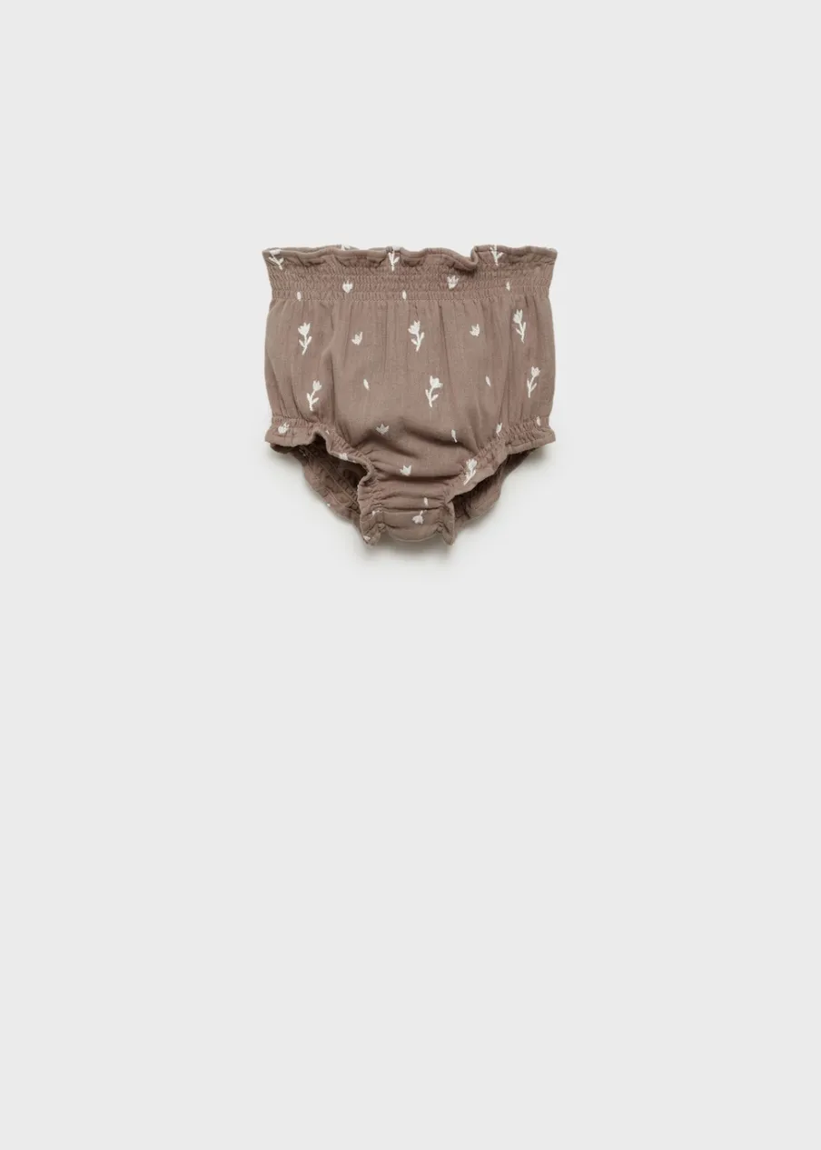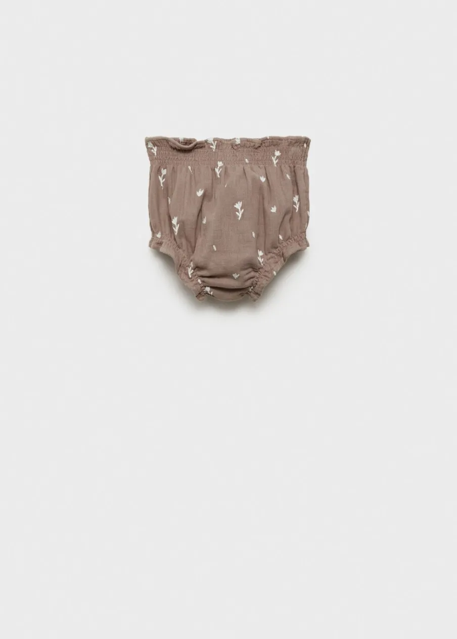 Bawełna 100%. Krótki krój. Elastyczne wykończenie. Elastyczny pas. Nadruk: kwiaty. Bez zapięcia.
