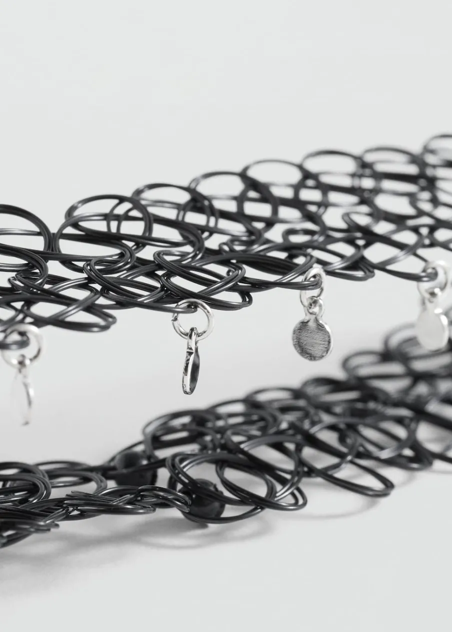 OpisW stylu choker. Metalowe koraliki. Elastyczne wykończenie. Zapięcie z tyłu.