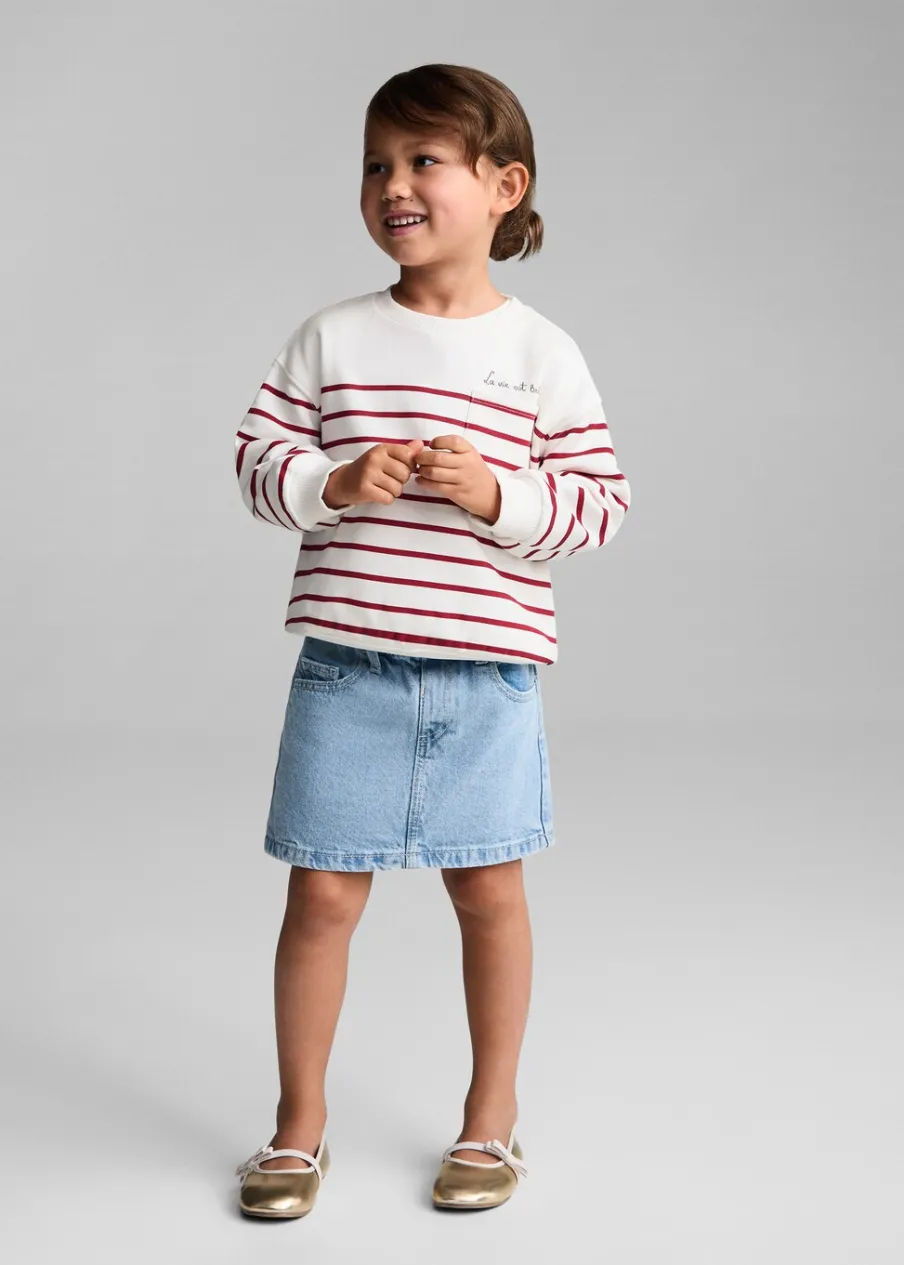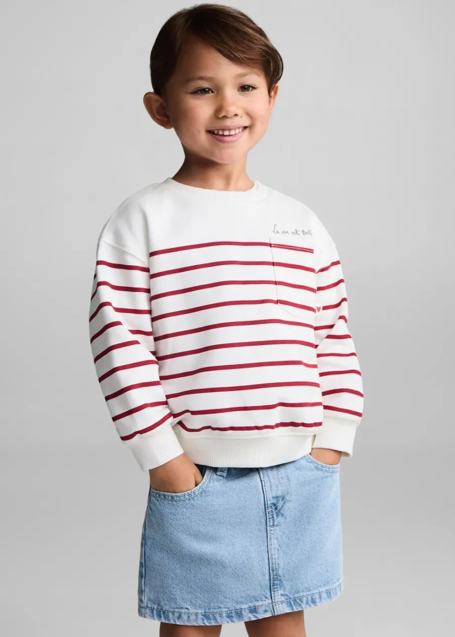 Kolekcja Powrót do szkoły. 100% bomull. Model prosty. Wzór w litery. Okrągły dekolt. Długi rękaw. Bez zapięcia. Wzór w paski. Nadruk.