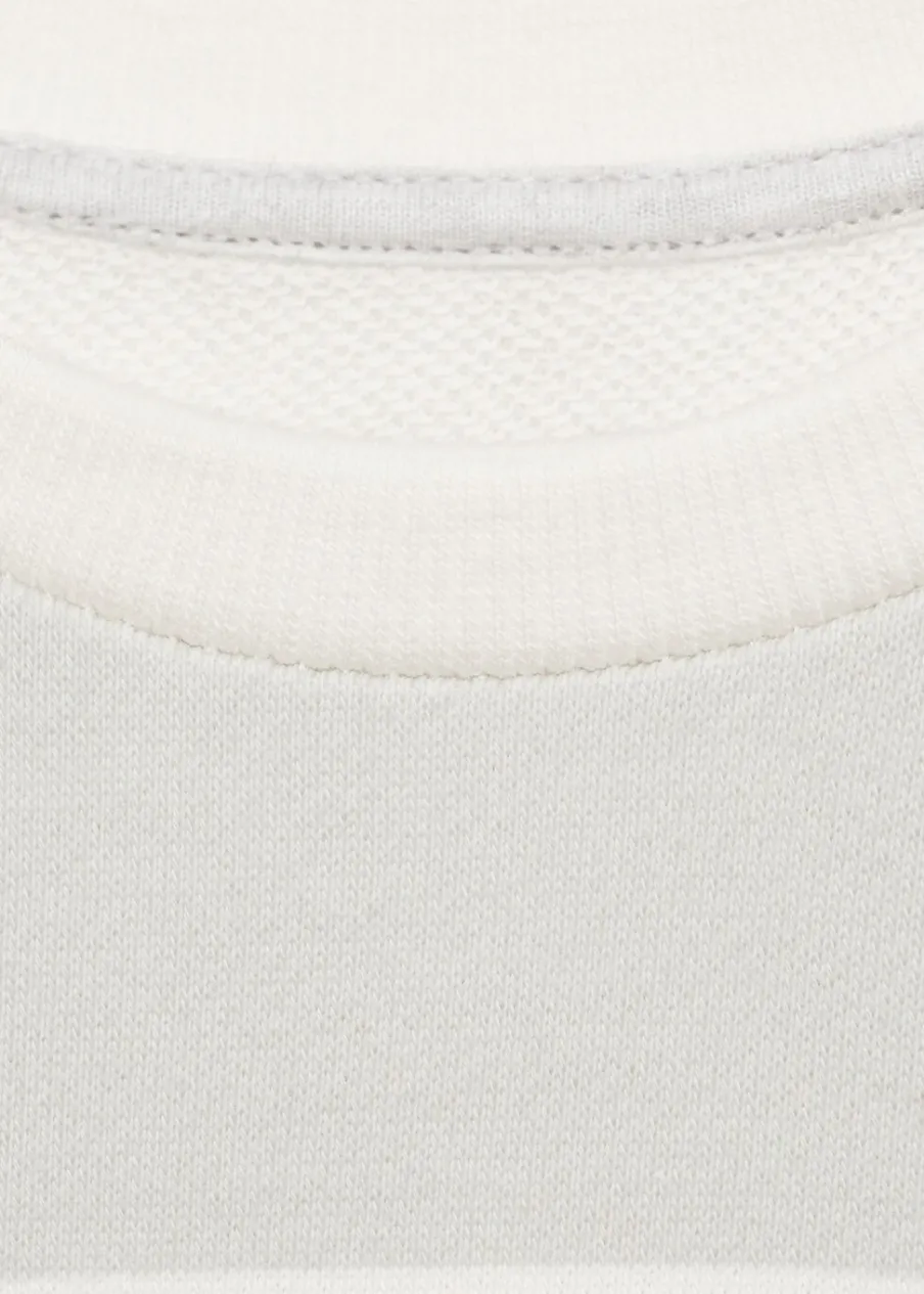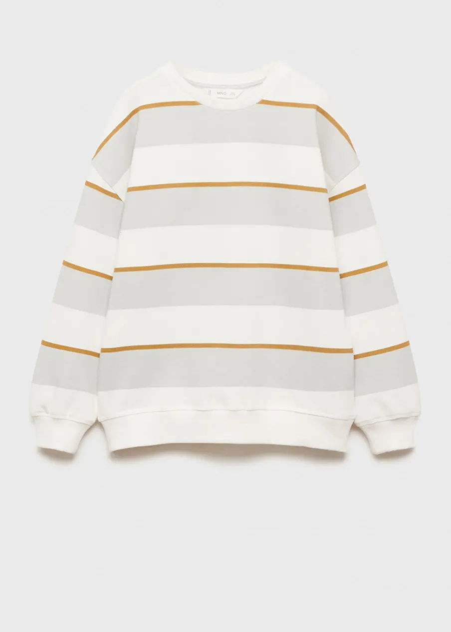 Bawełna 100%. Deseń w pasy. Okrągły dekolt. Kołnierz, mankiety i dół z prążkowanej dzianiny.