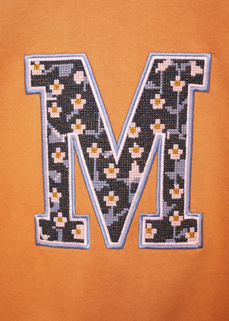 Bawełna 100%. Model prosty. Haftowany detal. Ozdobny motyw kwiatowy. Okrągły dekolt. Długi rękaw. Bez zapięcia.