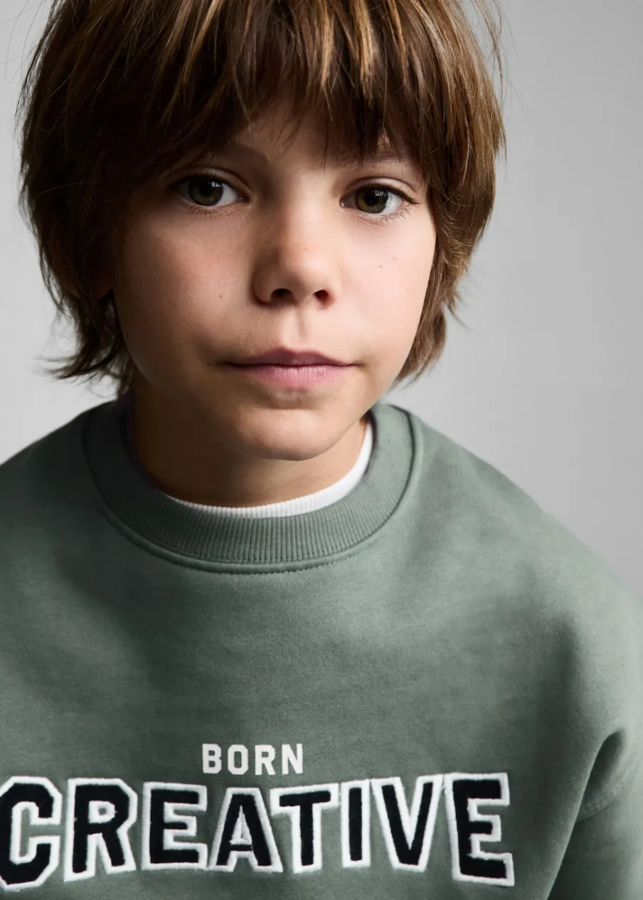 Tkanina z bawełną. Model prosty. Haftowany detal. Okrągły dekolt. Długi rękaw.