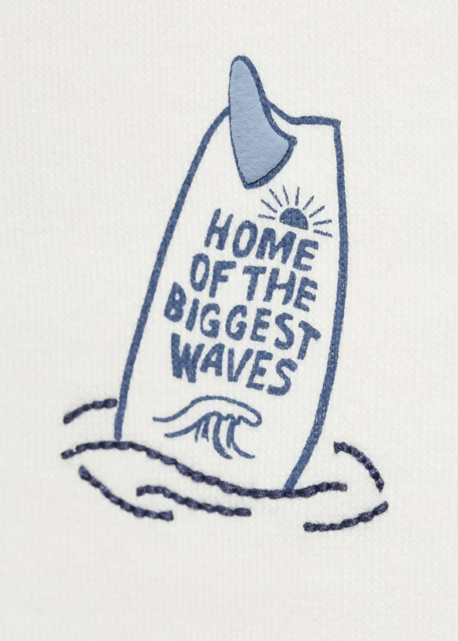 Kolekcja Powrót do szkoły. Bawełna 100%. Model prosty. Surferski nadruk. Haftowany detal. Kaptur. Długi rękaw. Dwie kieszenie boczne. Bez zapięcia.