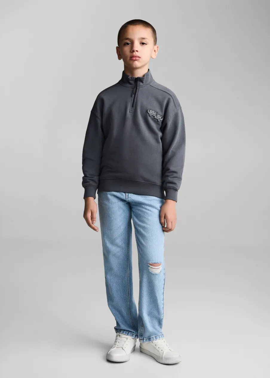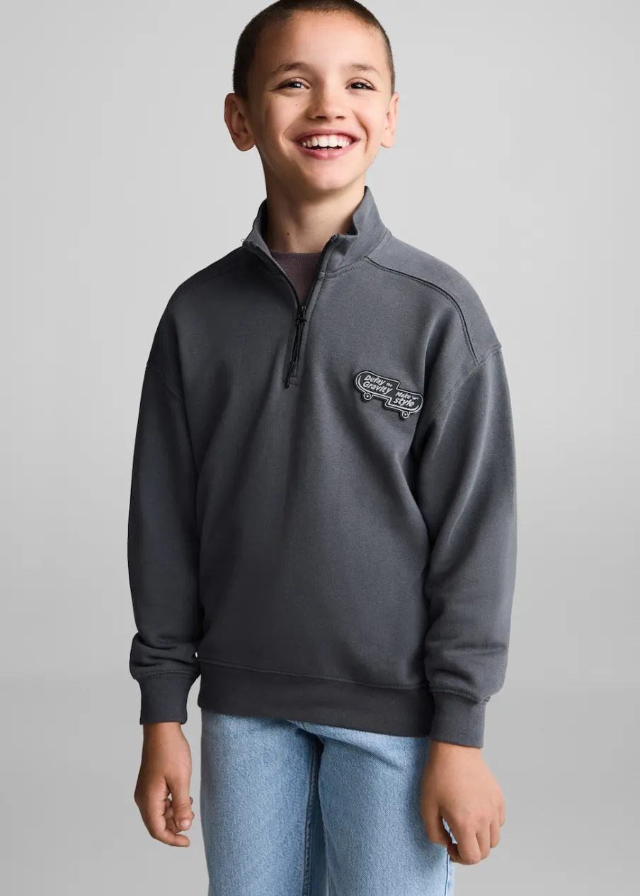 100% bomull. Model prosty. Wzór z tyłu. Długi rękaw. Nadruk. Zapięcie na zamek na dekolcie.