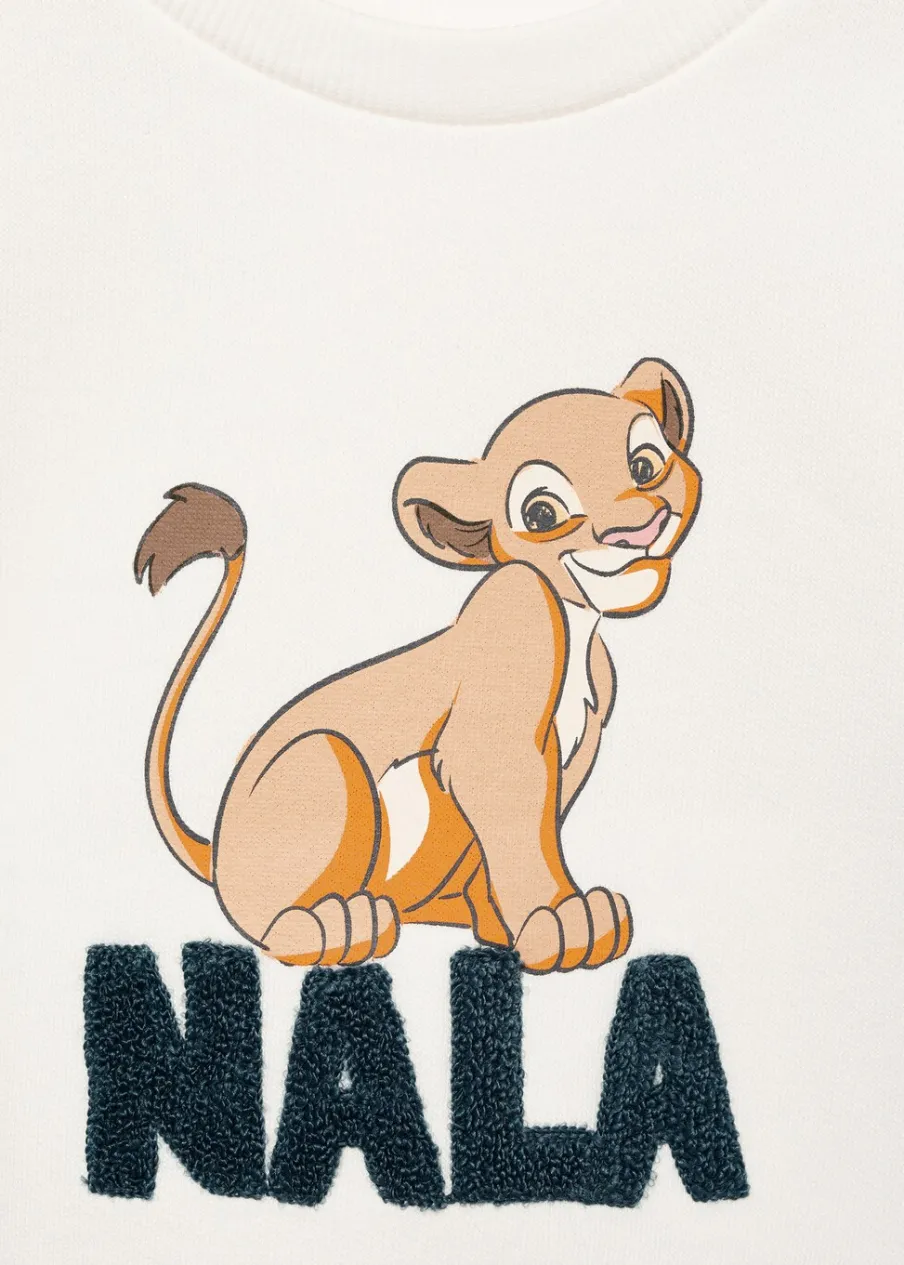 Tkanina z bawełną. Model prosty. Wypukły nadruk. Nadruk Król Lew. Długi rękaw. Okrągły dekolt.