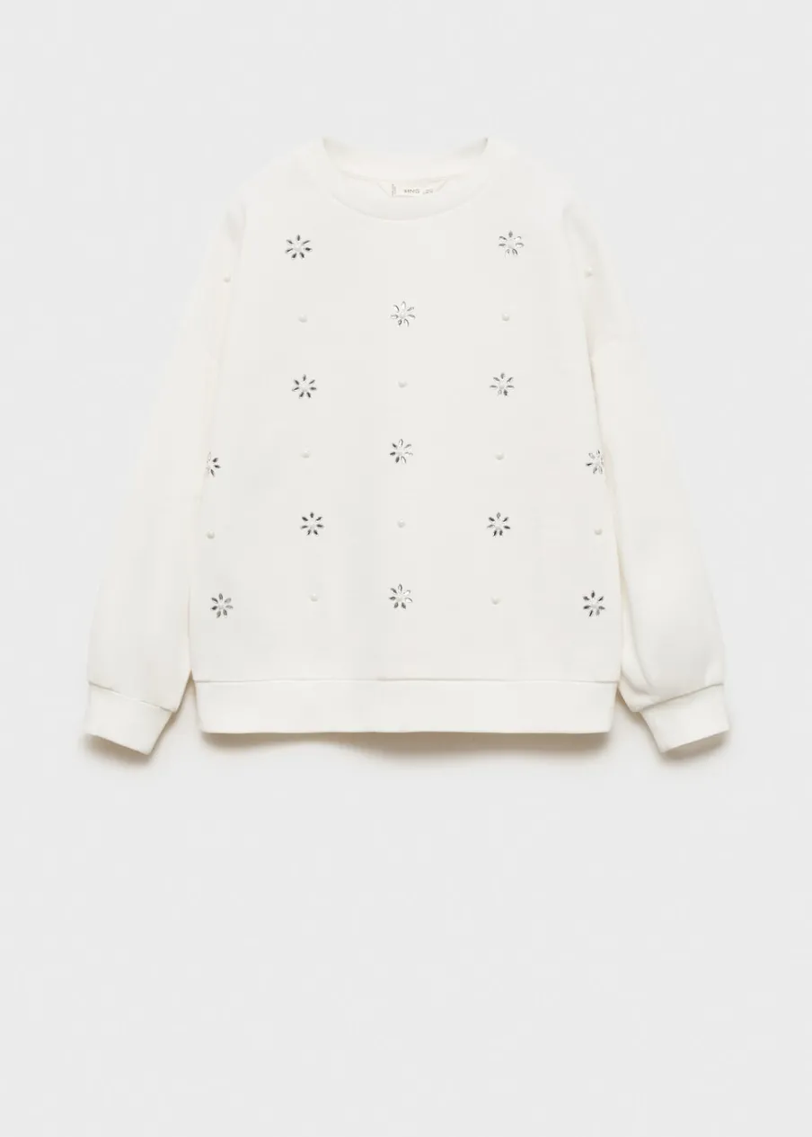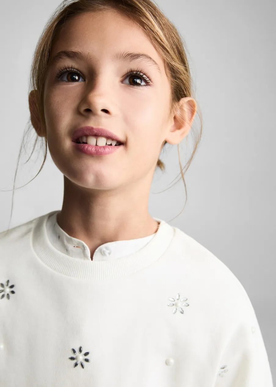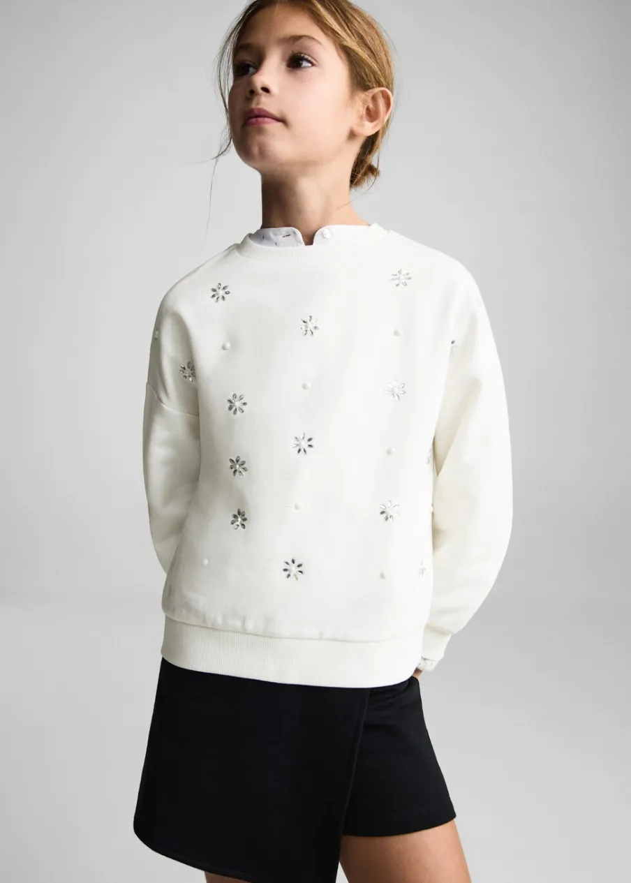 OpisBawełna 100%. Kwiatowy deseń. Cekinowa ozdoba. Długi rękaw. Kołnierz, mankiety i dół z prążkowanej dzianiny…