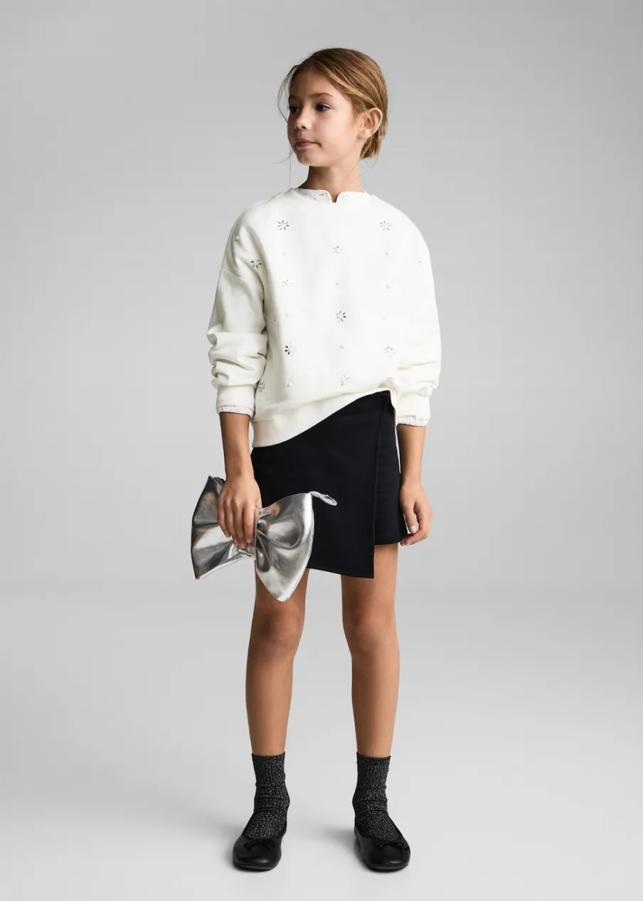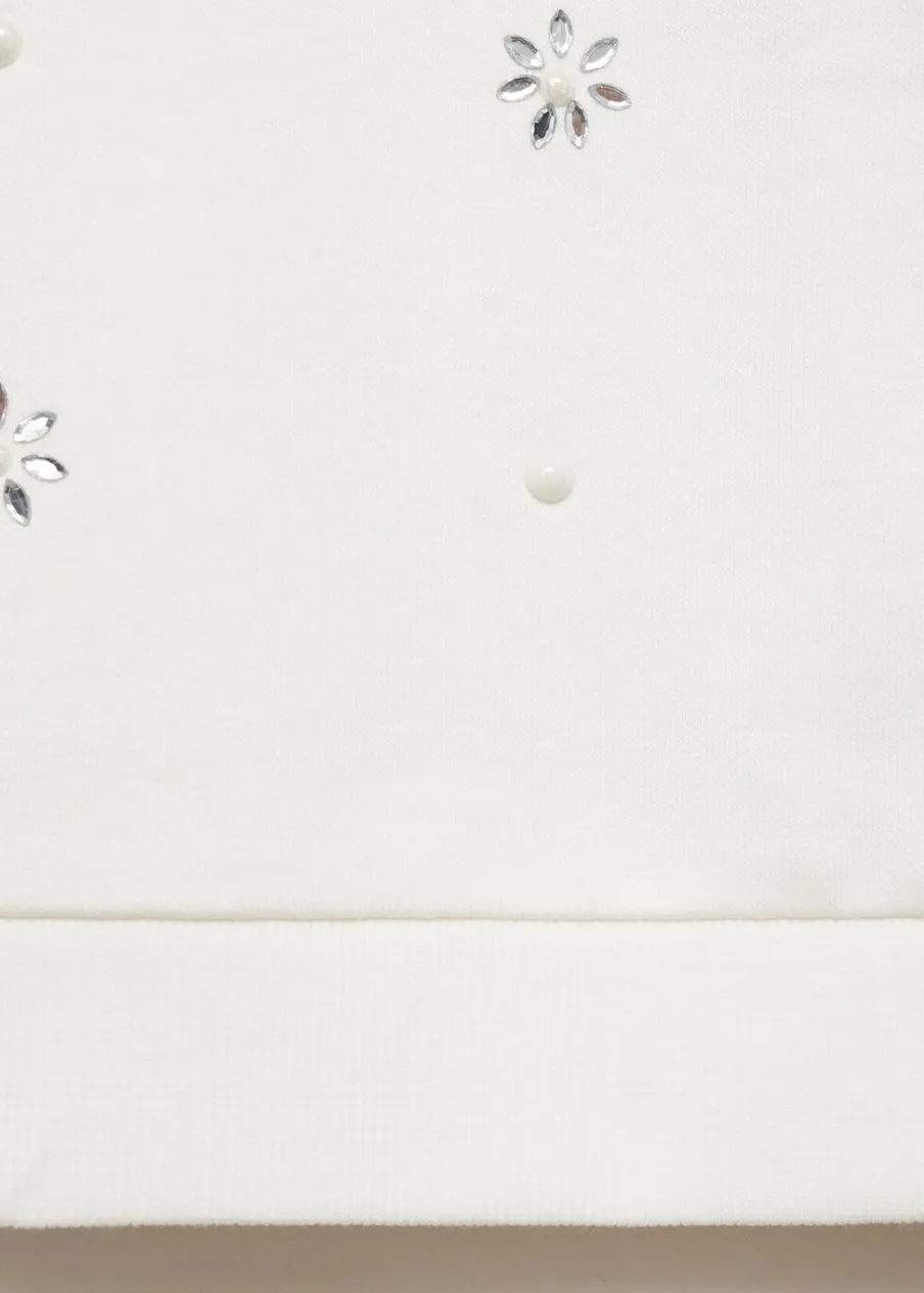 Bawełna 100%. Kwiatowy deseń. Cekinowa ozdoba. Długi rękaw. Kołnierz, mankiety i dół z prążkowanej dzianiny. Bez zapięcia.