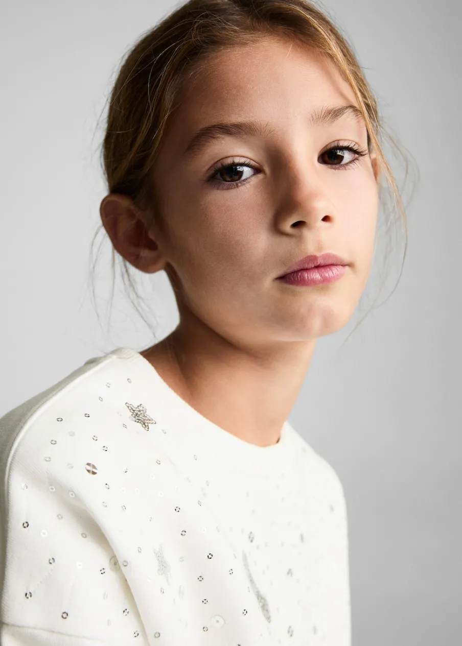 Bawełna 100%. Z ozdobnymi cekinami. Model prosty. Okrągły dekolt. Długi rękaw. Kolekcja wieczorowa i imprezowa.