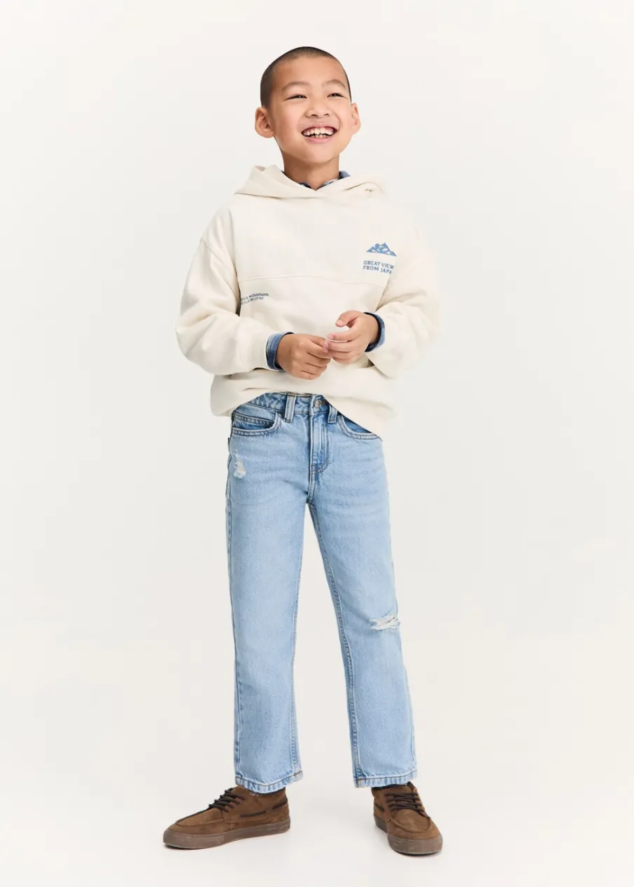 Kolekcja Powrót do szkoły. Tkanina z bawełną. Kaptur. Nadruk. Długi rękaw. Høyt liv. Model prosty.