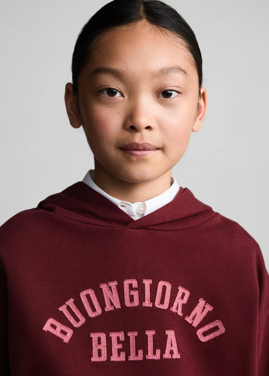 OpisTkanina z bawełną. Kaptur. Model prosty. Model długi. Haftowany detal. Długi rękaw. Kieszeń kangurka.
