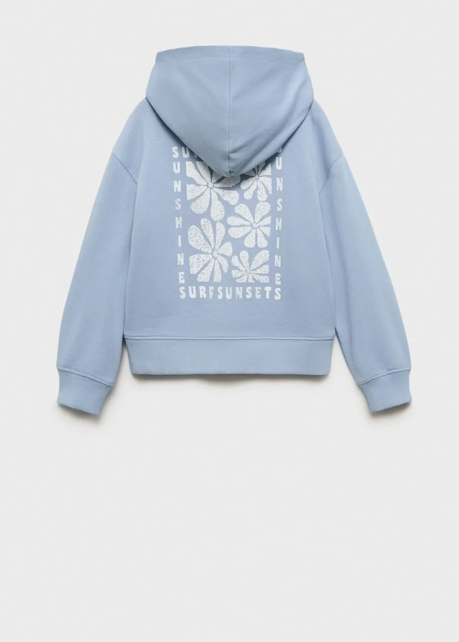 OpisKolekcja Powrót do szkoły. Kaptur. Wzór w kwiaty. Długi rękaw. Model prosty. Kieszeń kangurka.