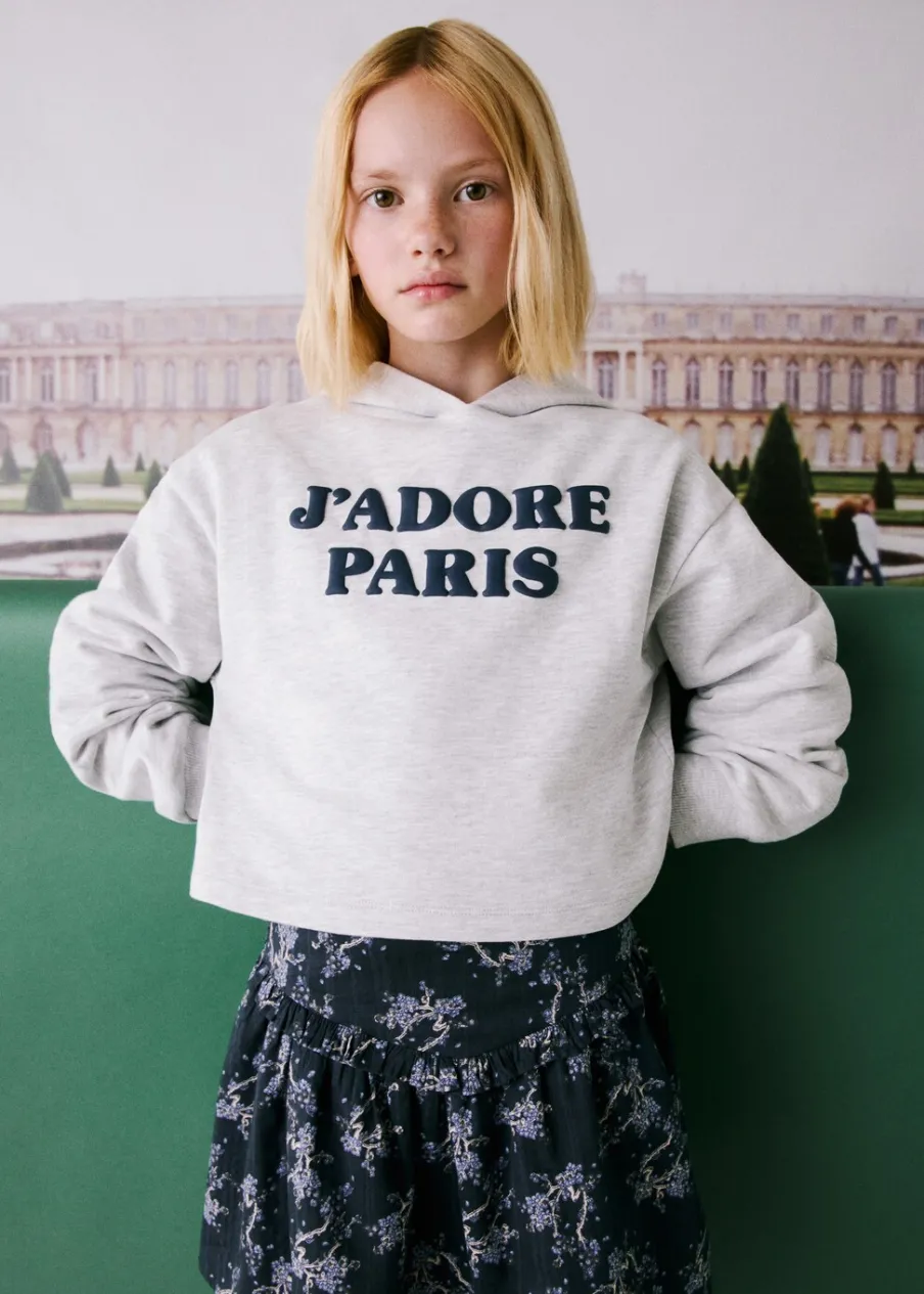 OpisTkanina z bawełną. Model prosty. Wypukły nadruk. Deseń crop. Długi rękaw. Kaptur. Bez zapięcia.
