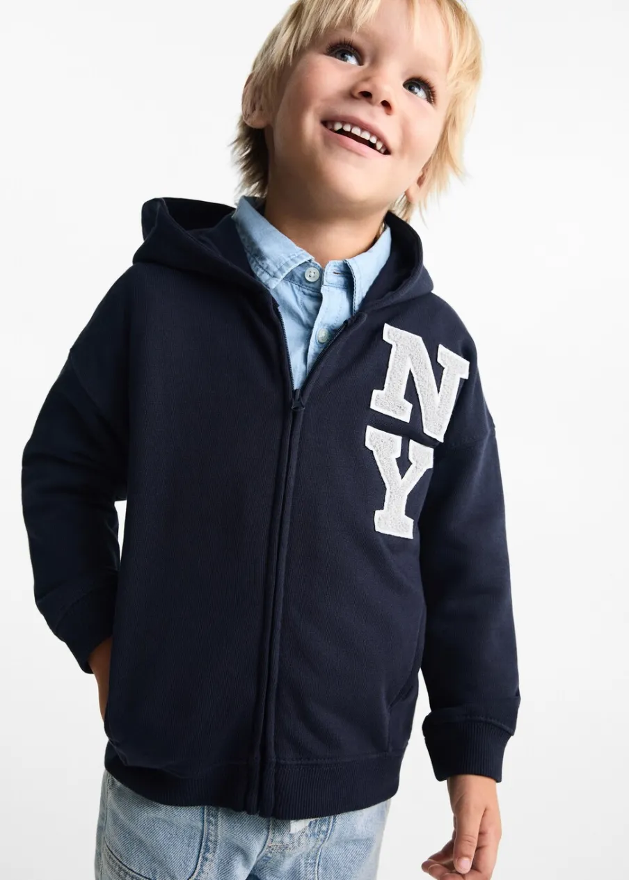 100% bomull. Model prosty. Wypukły nadruk. Długi rękaw. Dwie kieszenie boczne. Kaptur. Zapięcie na suwak. Nadruk.