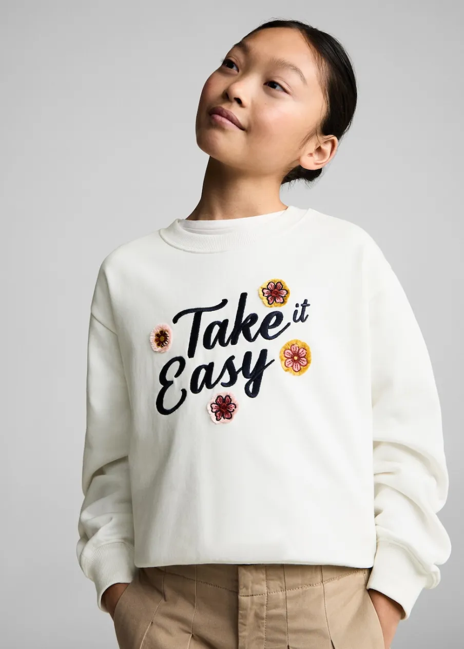 Długi rękaw. Okrągły dekolt. Bawełna 100%. Haftowane detale.