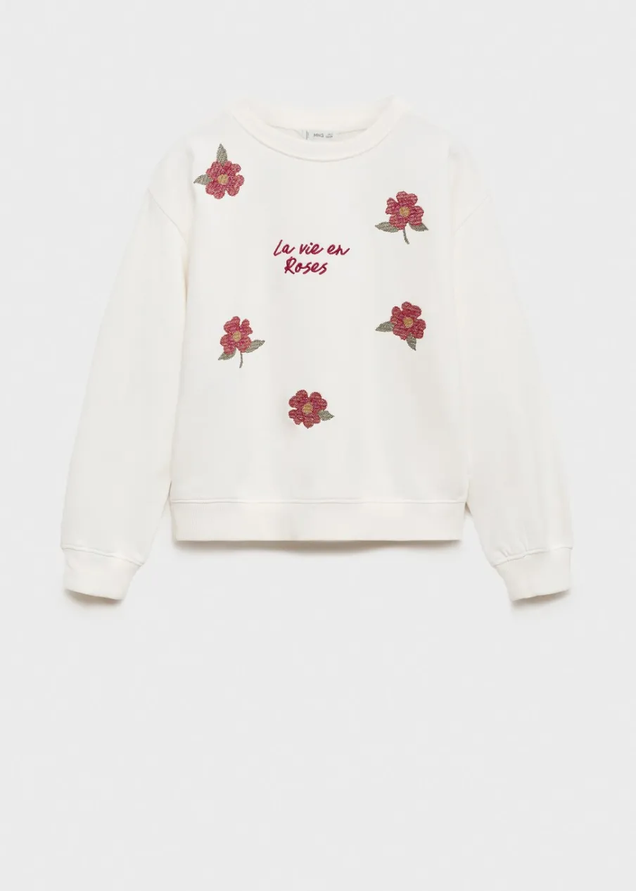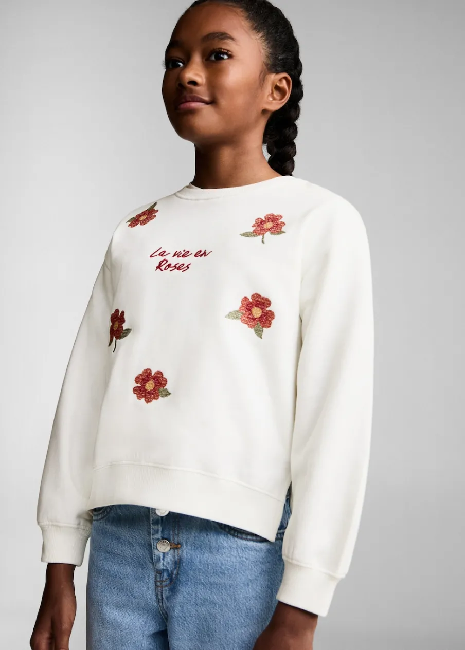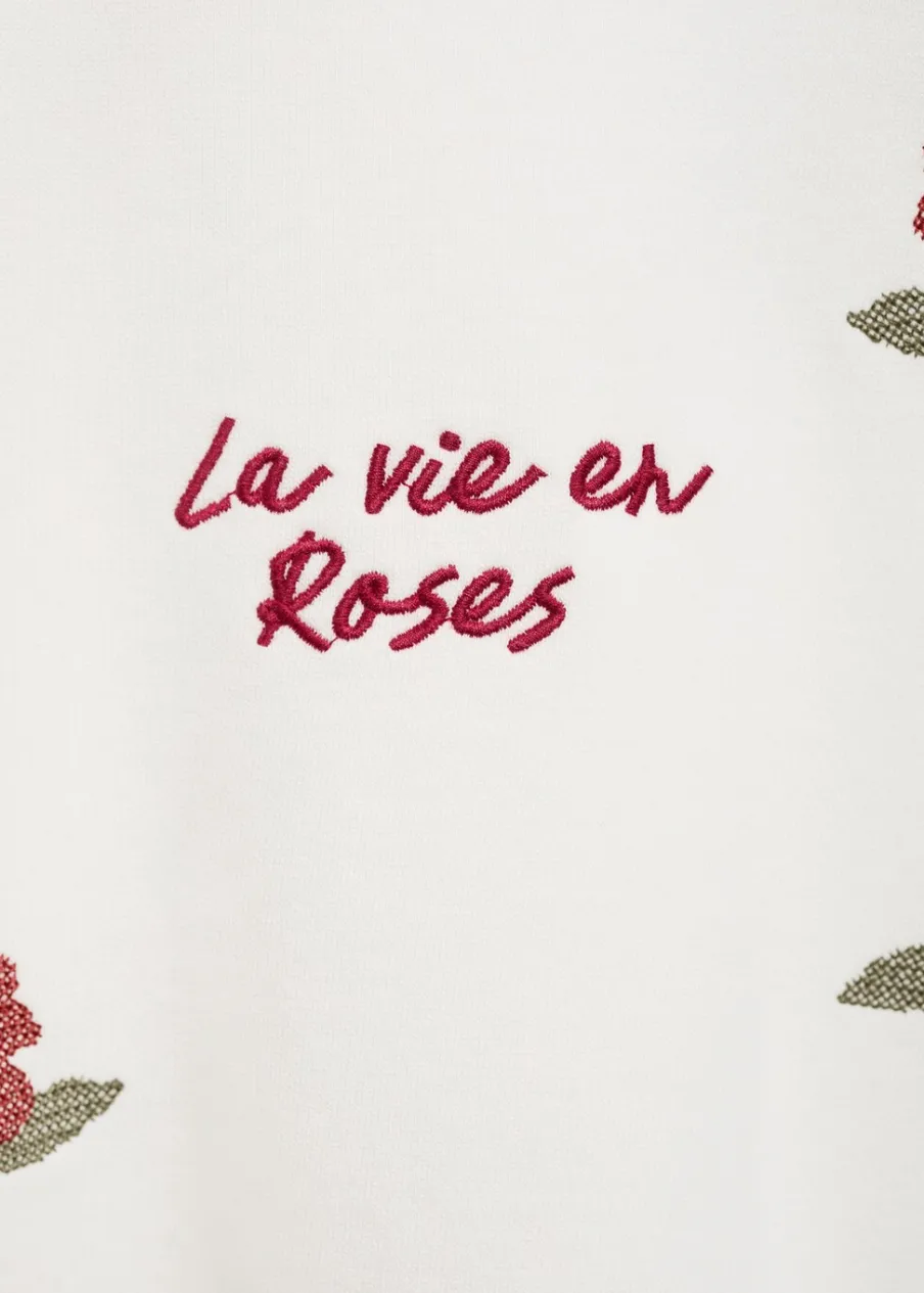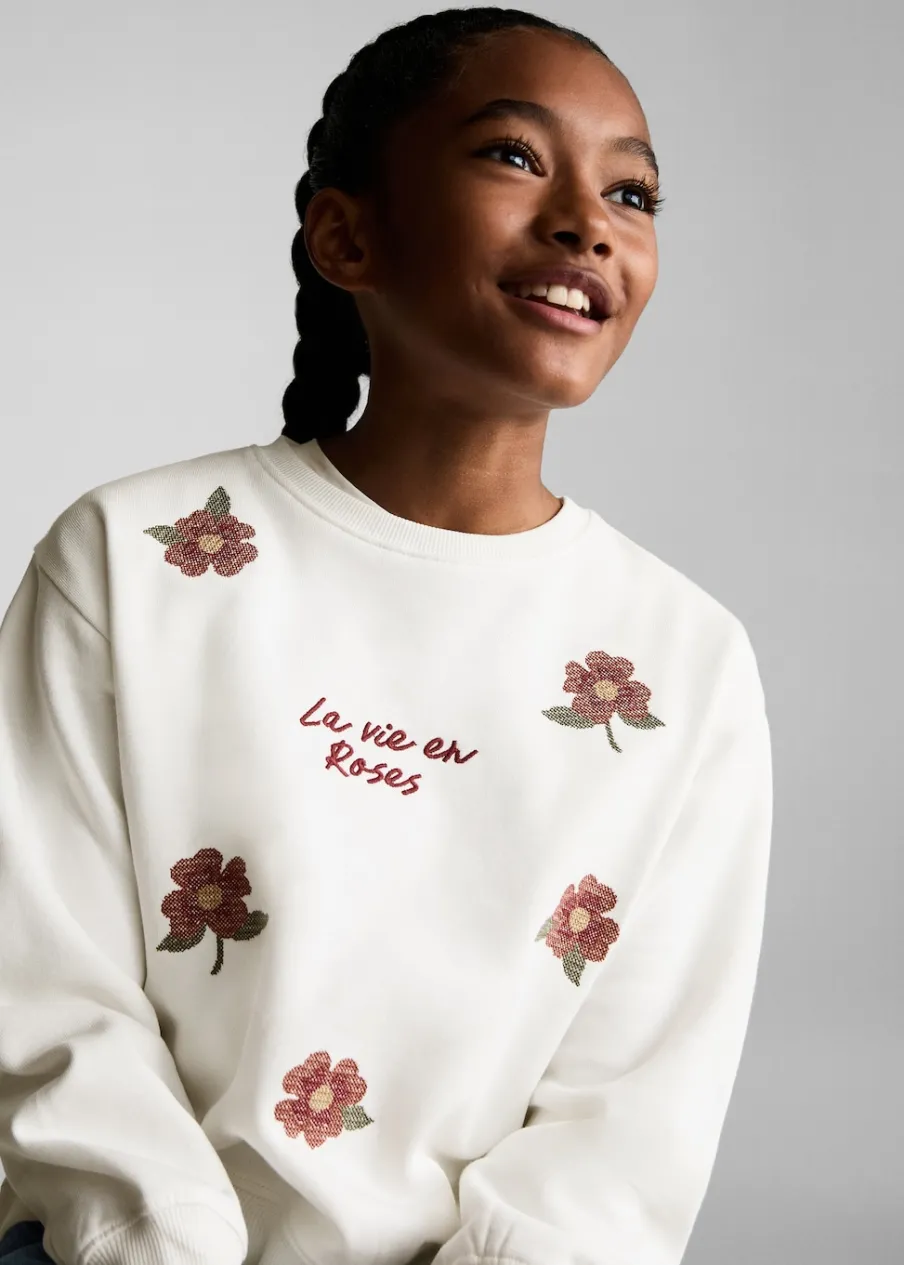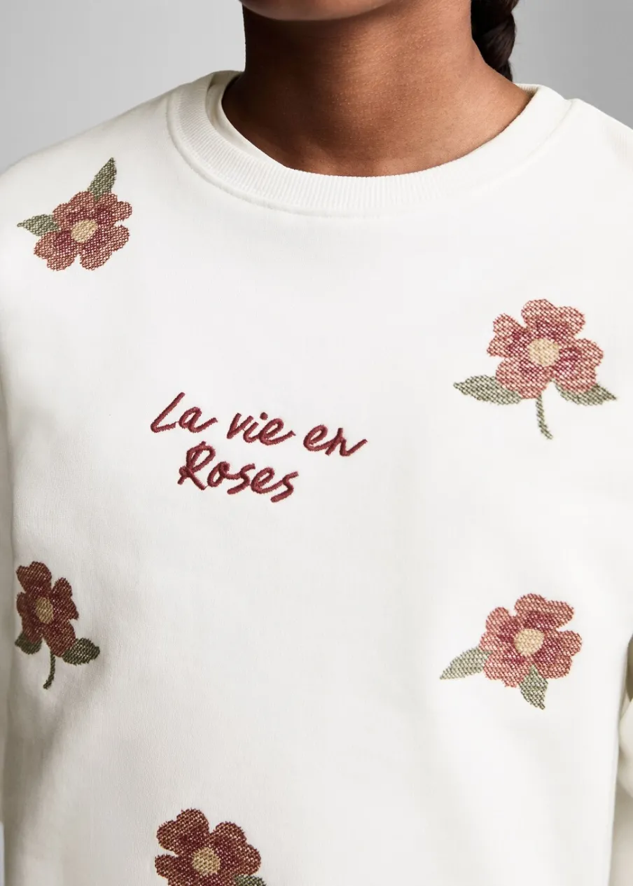 Długi rękaw. Okrągły dekolt. Bawełna 100%. Haftowane detale.