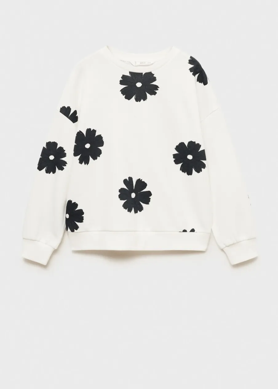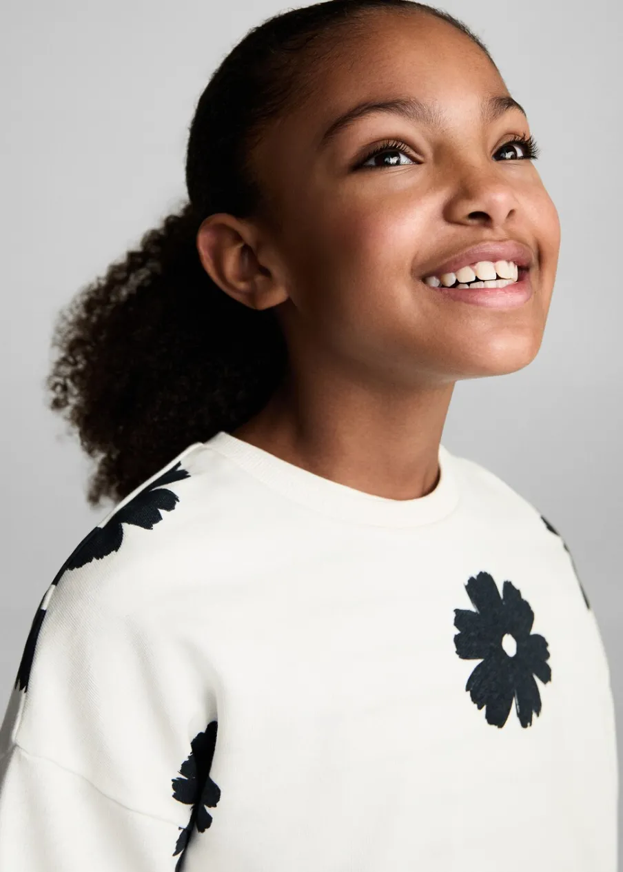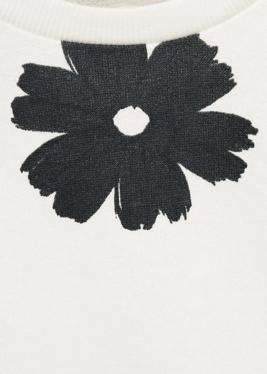 Bawełna 100%. Model prosty. Wzór w kwiaty. Okrągły dekolt. Długi rękaw. Kołnierz, mankiety i dół z prążkowanej dzianiny.