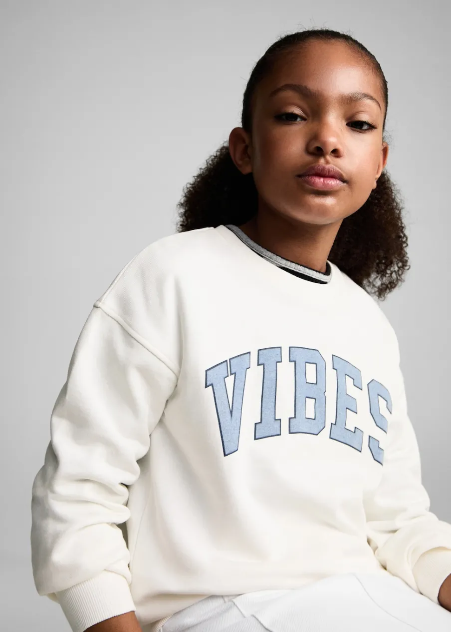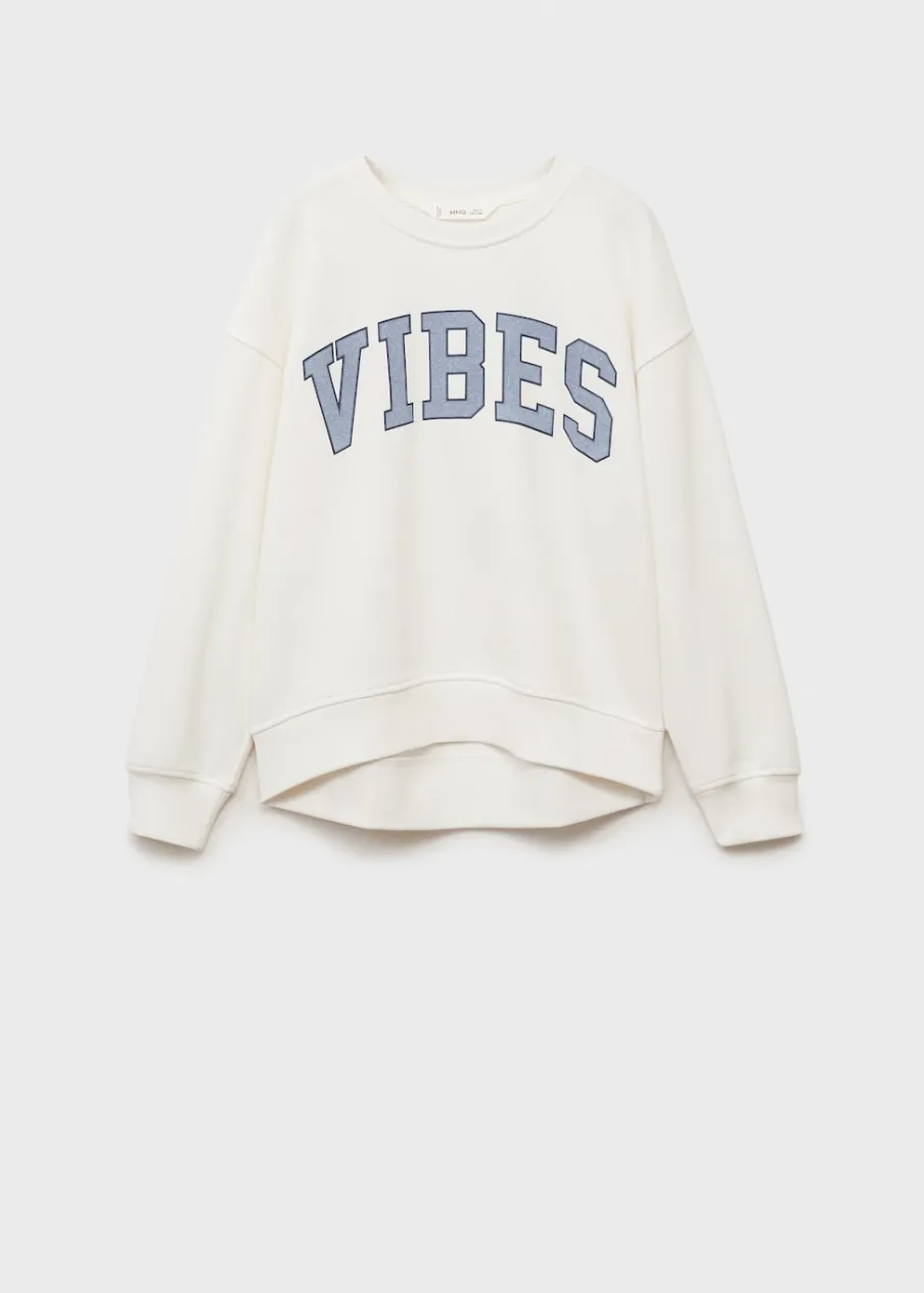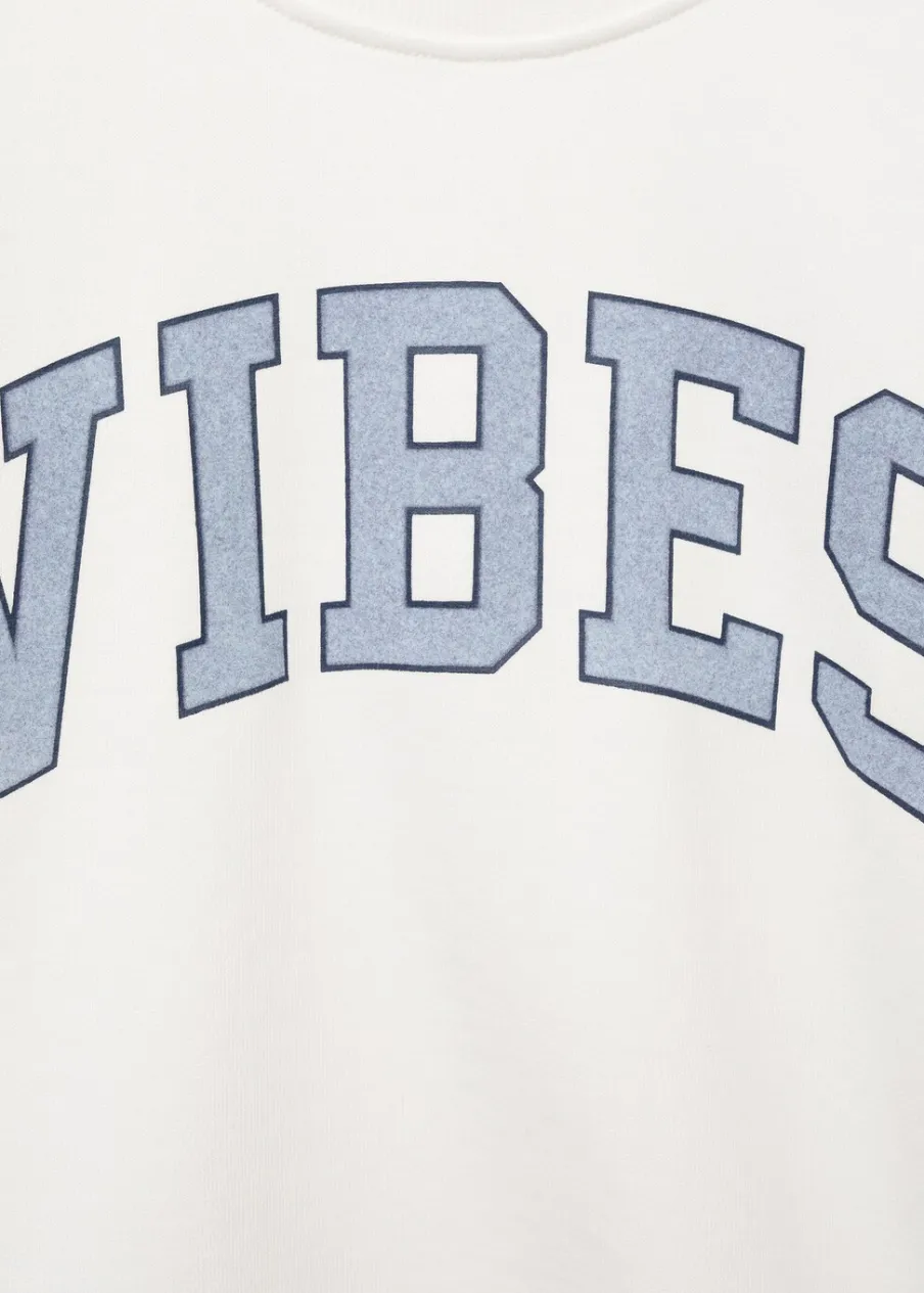 Tkanina z 100% bawełny. Model prosty. Nadruk tekstu. Kołnierz, mankiety i dół z prążkowanej dzianiny. Długi rękaw.
