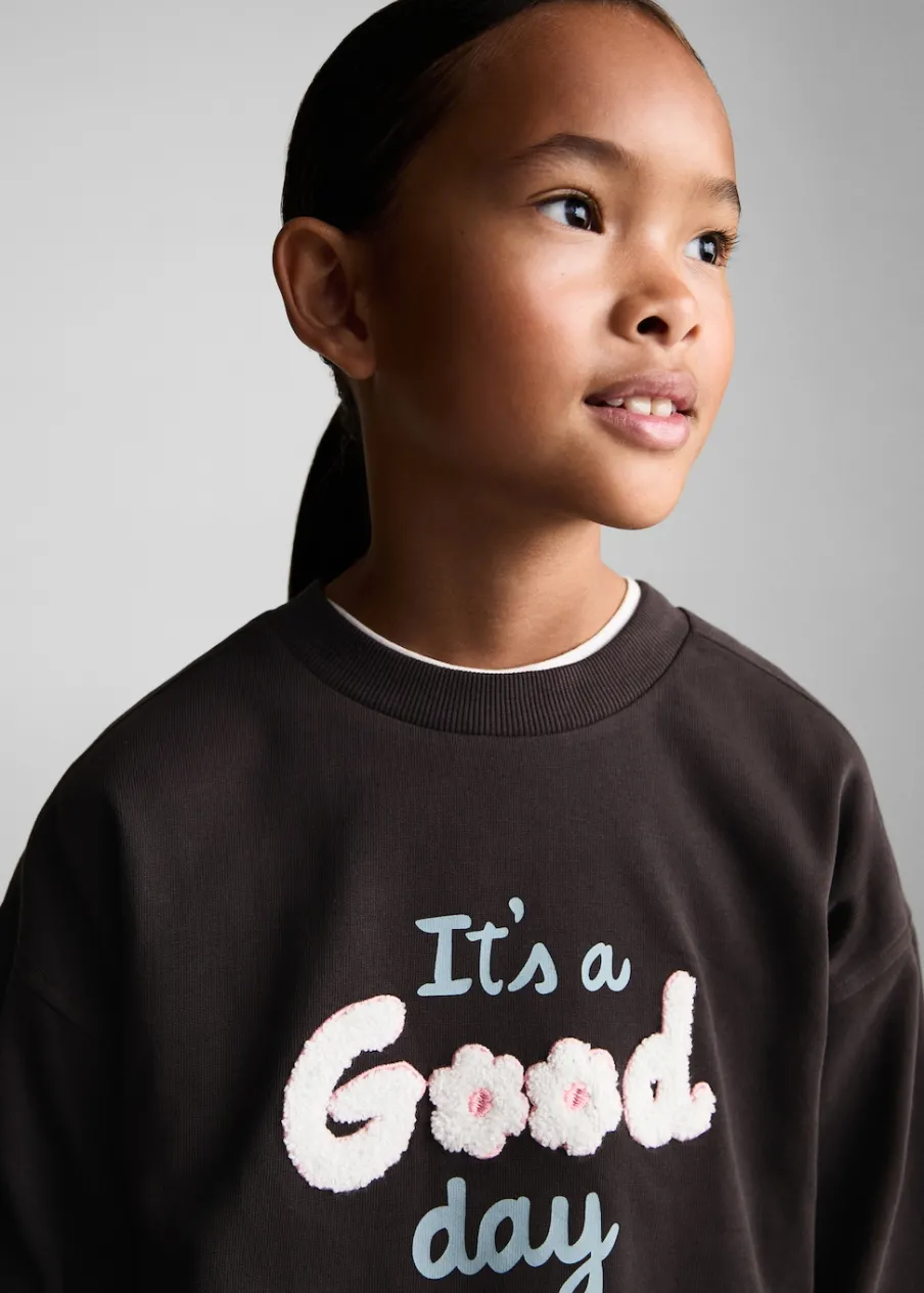 Długi rękaw. Okrągły dekolt. Bawełna 100%. Wzorzysta. Haftowany detal.