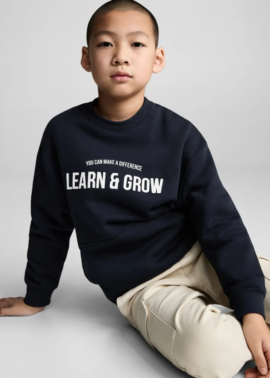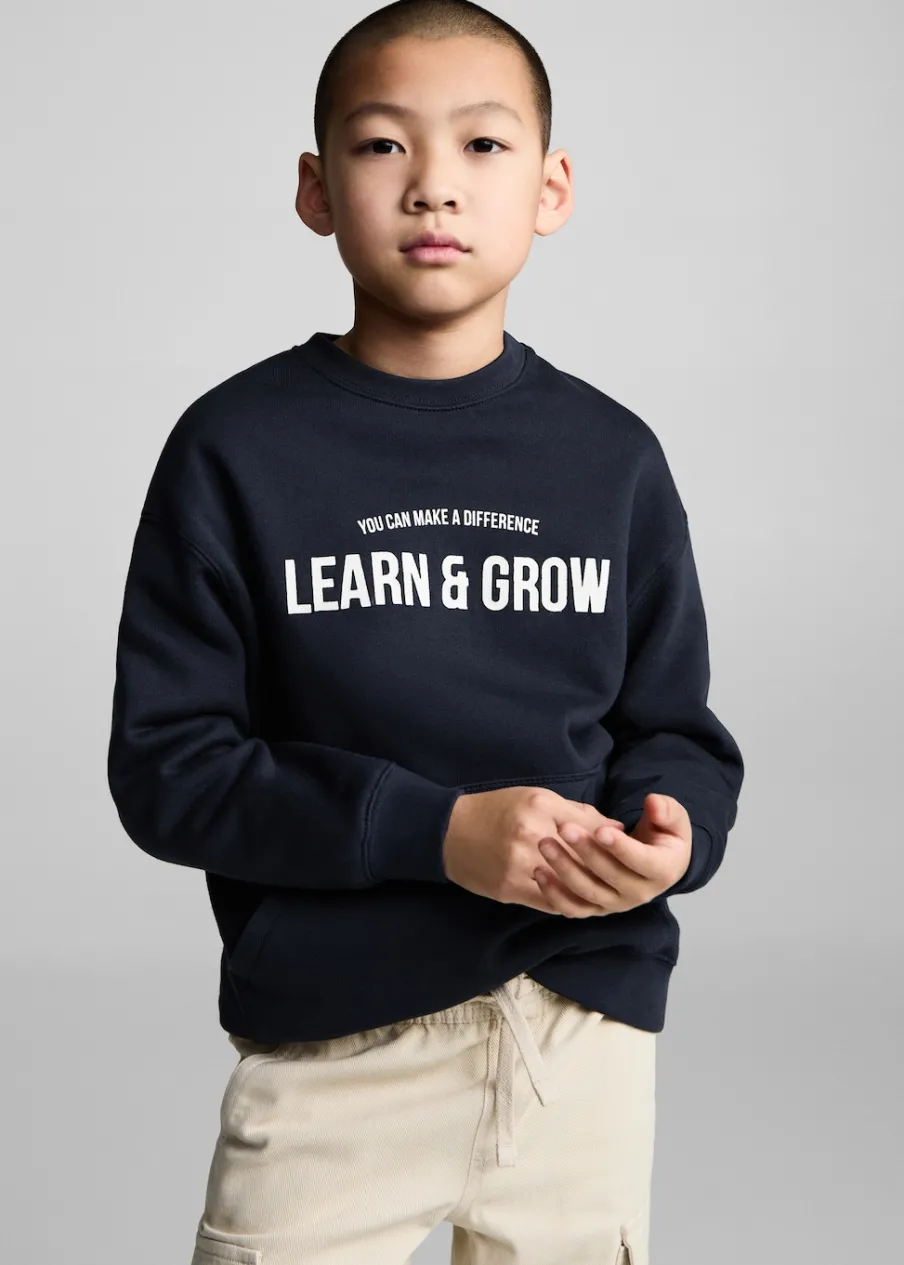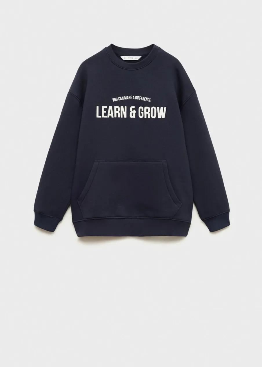 Bawełna 100%. Wzór w litery. Okrągły dekolt. Długi rękaw.