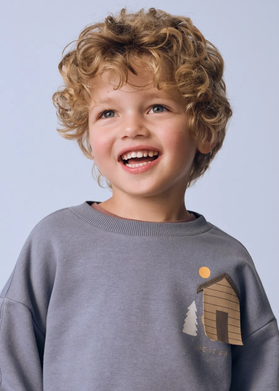 OpisTkanina z bawełną. Model prosty. Okrągły dekolt. Długi rękaw. Z nadrukami. Ruchomy nadruk. Bez zapięcia.