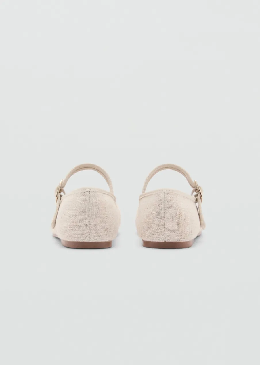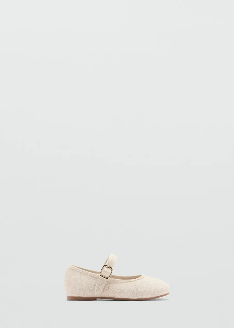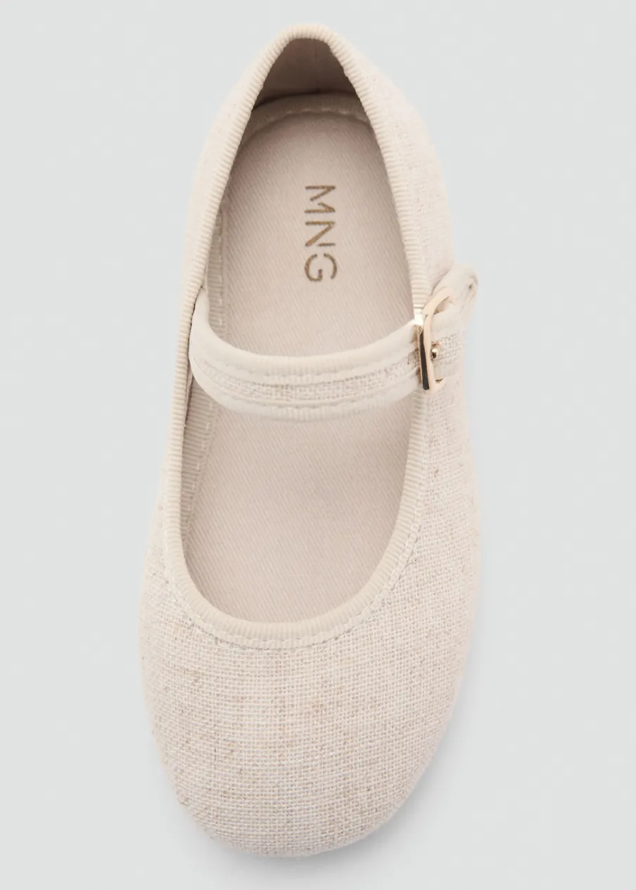 OpisTkanina kanwa. Okrągły nosek. Zapięcie na pasek ze sprzączką.