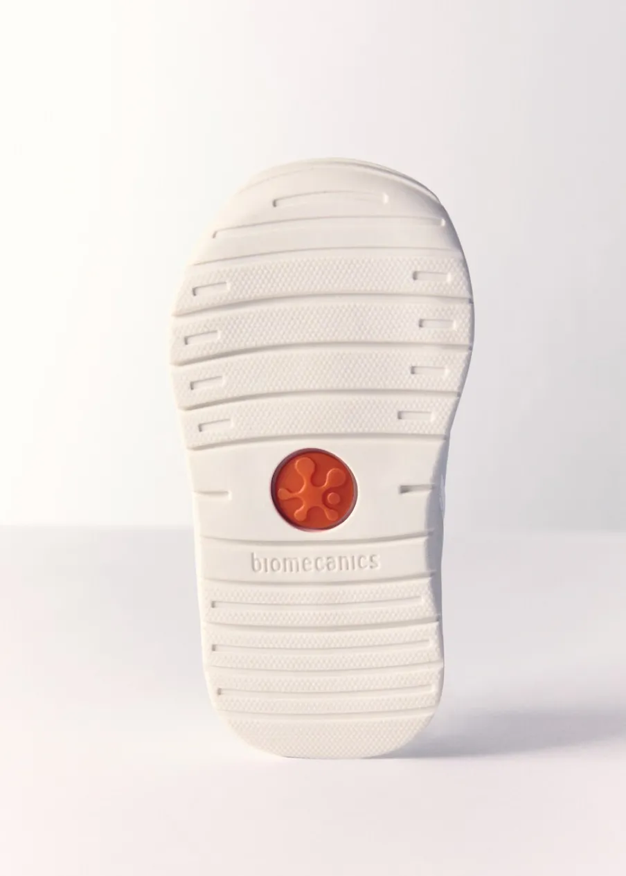 Kolekcja biomecanics. 100% skóra bydlęca. Wykonane z naturalnych materiałów wolnych od chromu i niklu. Maksymalna wygoda i oddychalność. Miękki stabilizator, który uwalnia kostkę i chroni stopy. Cienka, antypoślizgowa podeszwa zapewniająca zgięcie grzbietowe. Zapięcie na paski na rzepy. Anatomiczna wkładka przeciwbakteryjna.