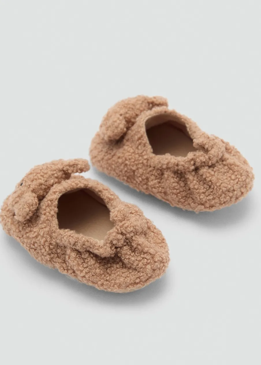 OpisW kształcie misia. Pętelkowa dzianina. Okrągły nosek. Bez zapięcia. Płaska podeszwa.