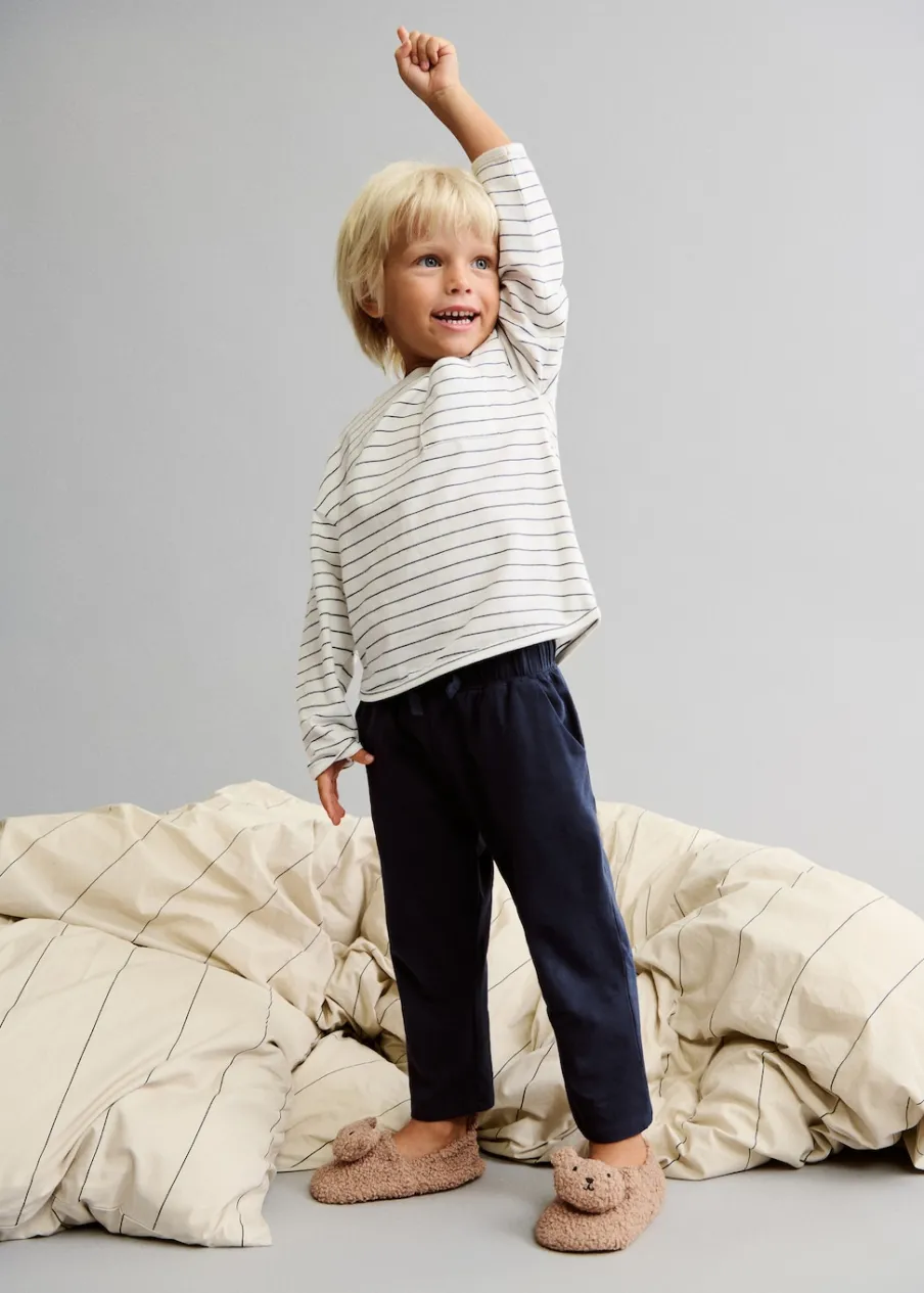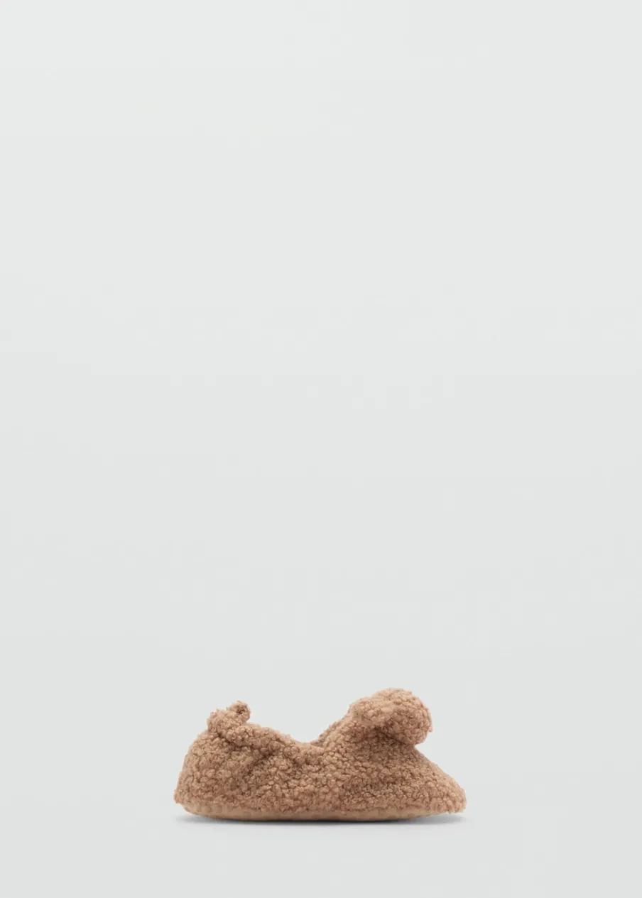 W kształcie misia. Pętelkowa dzianina. Okrągły nosek. Bez zapięcia. Płaska podeszwa.