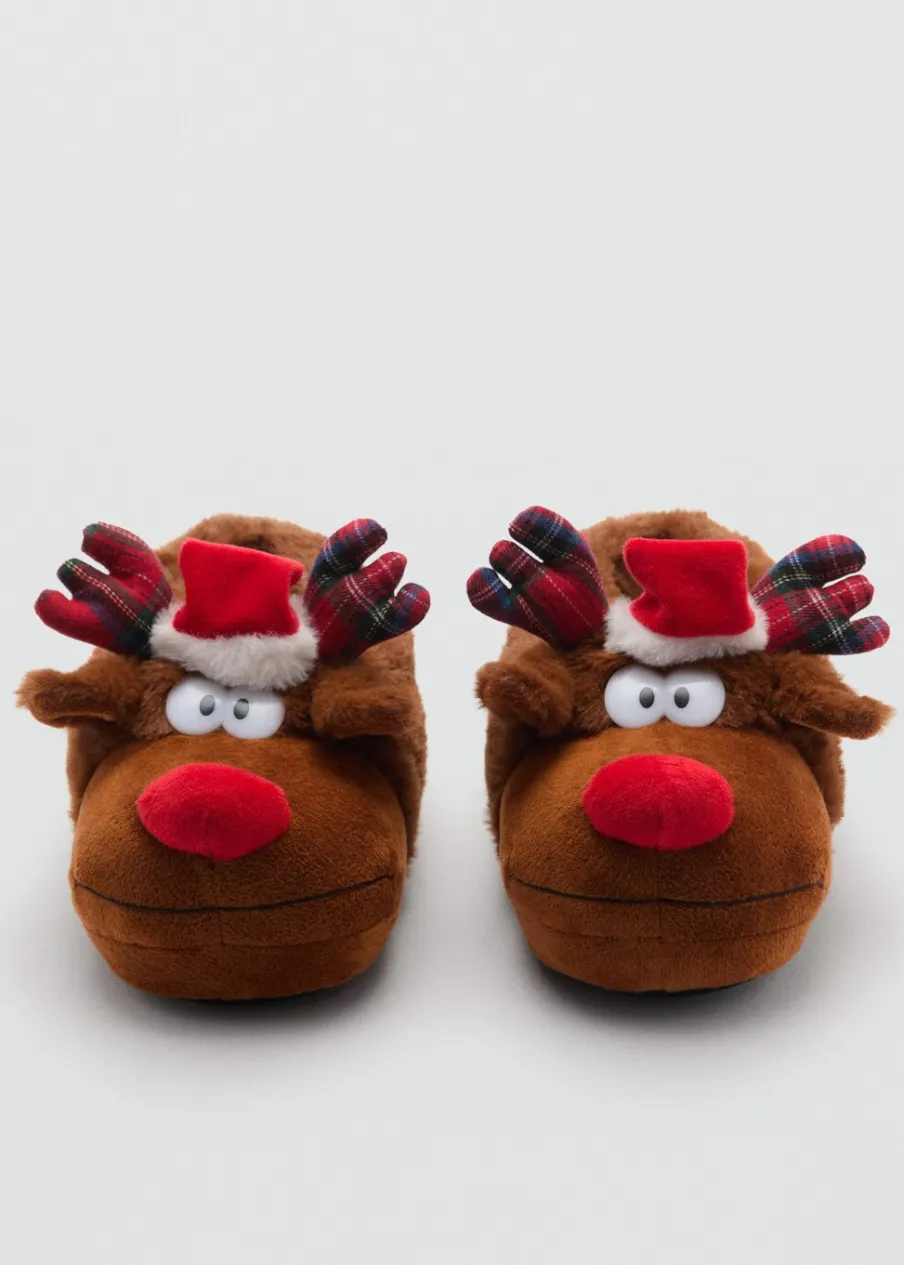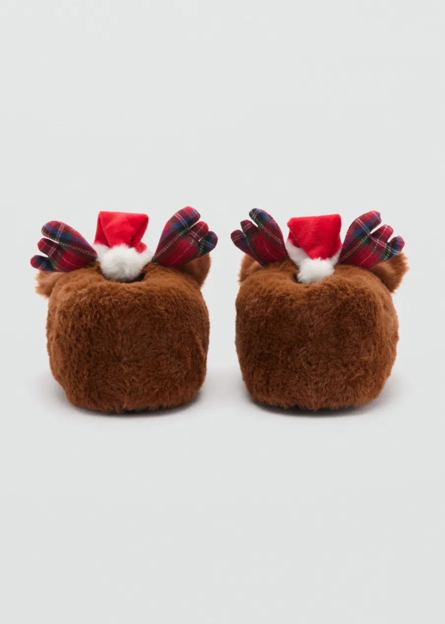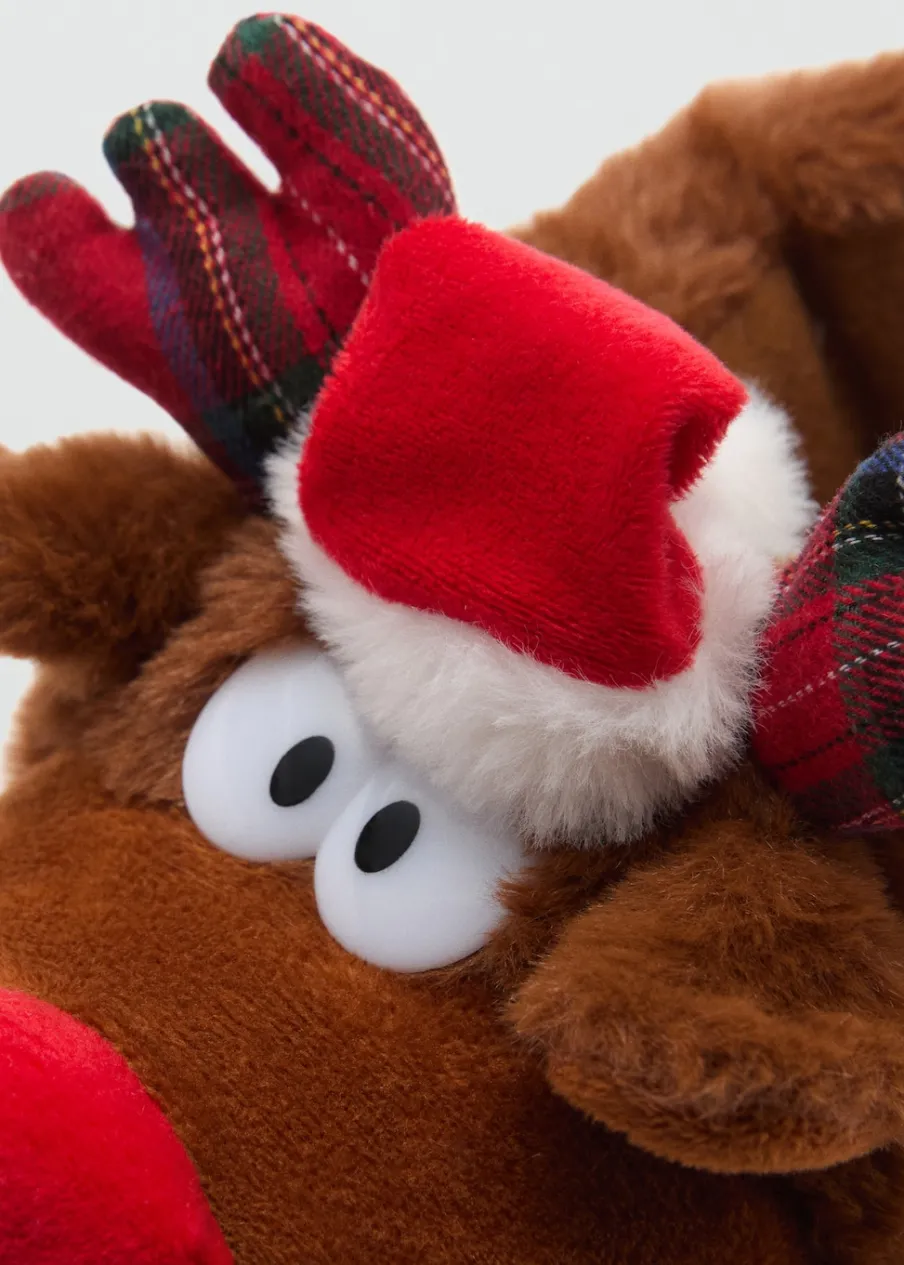 OpisFutrzana tkanina. Okrągły nosek. Motyw renifera. Renifer Rudolf. Kolekcja Bożonarodzeniowa.