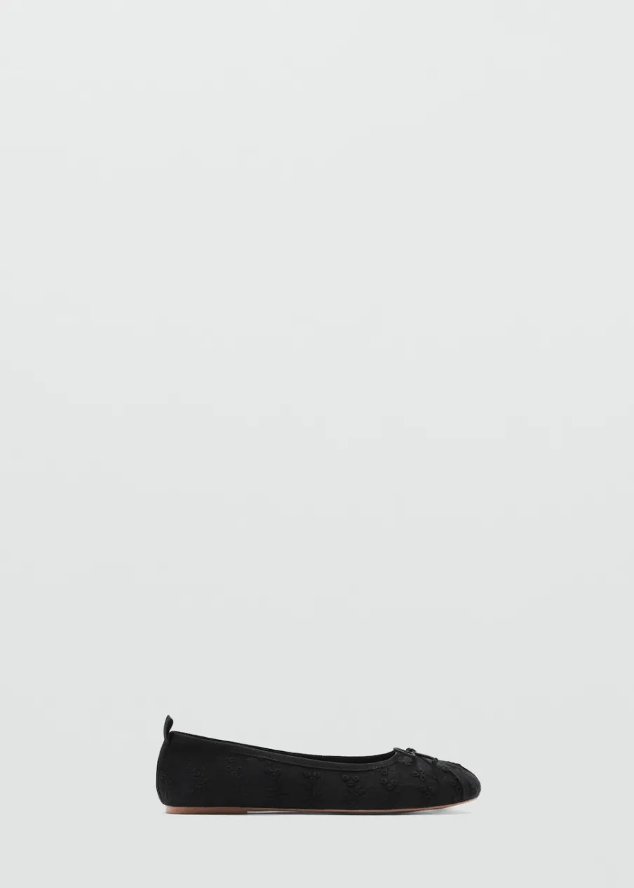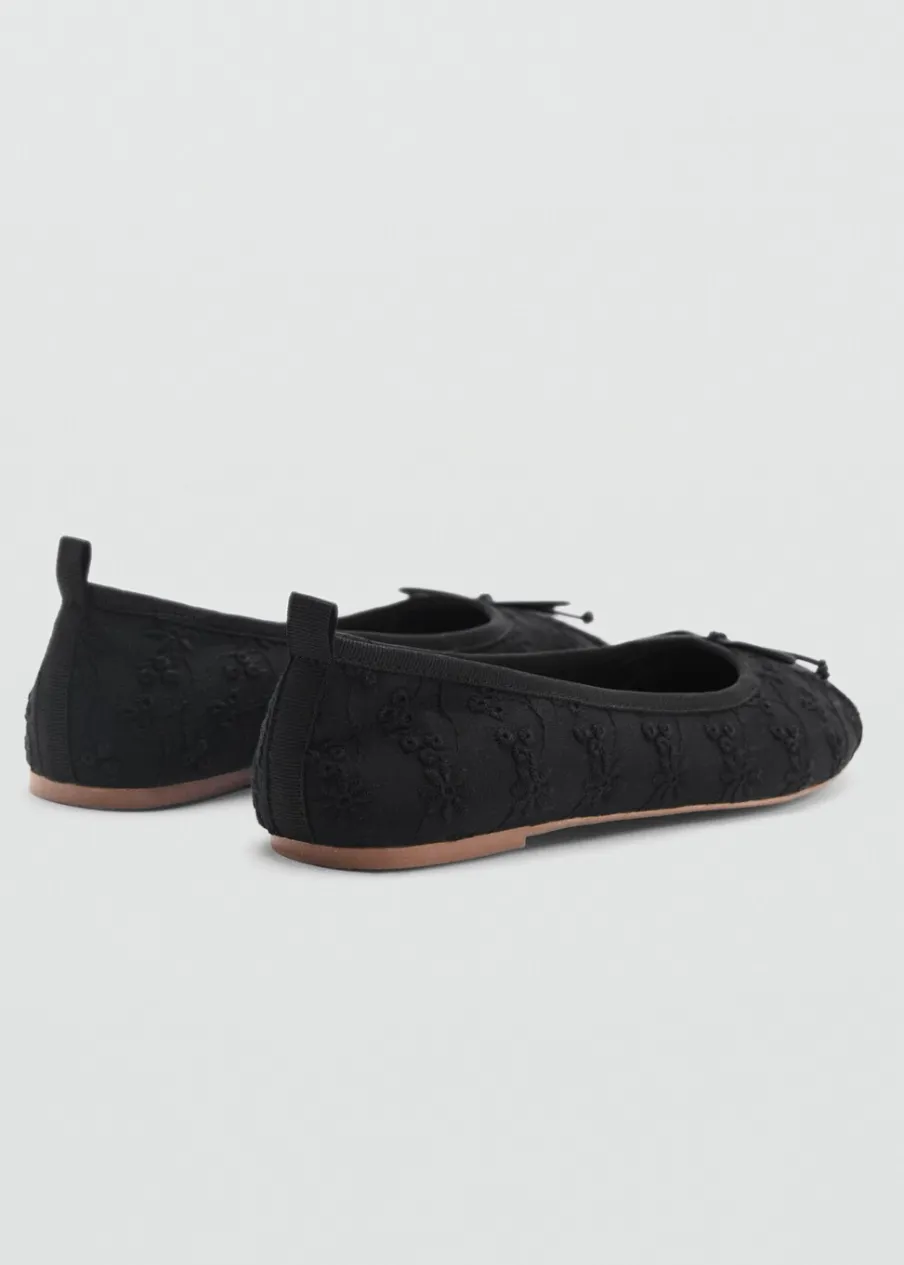 Bawełna 100%. Tkanina z angielskim haftem. Okrągły nosek. Ozdobna kokardka.