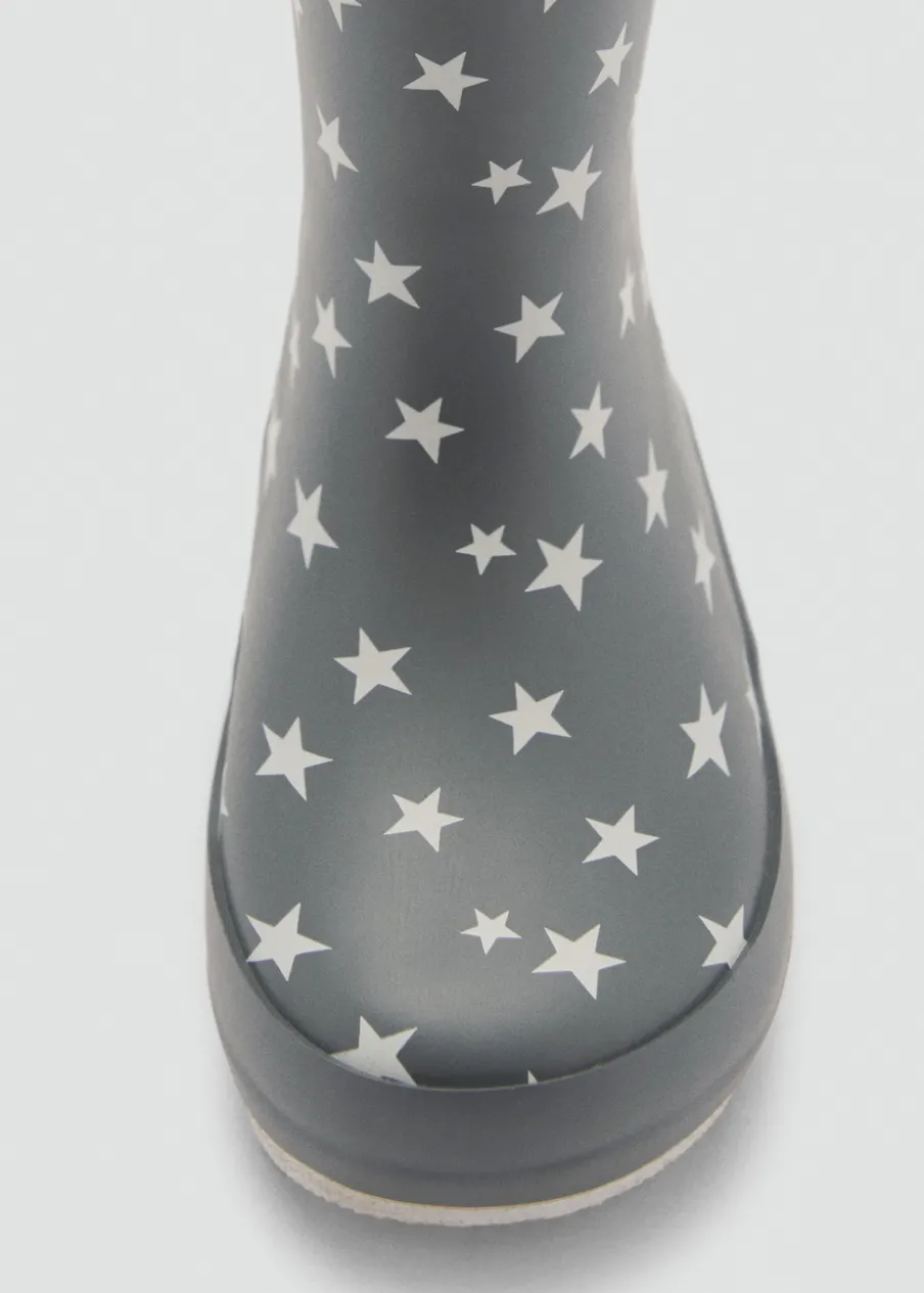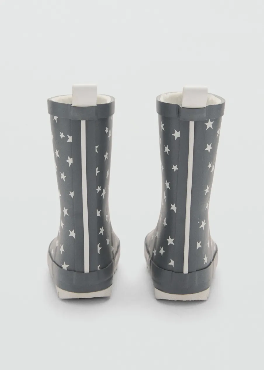 OpisWzór w gwiazdki. Futrzana podszewka z baranka. Okrągły nosek. Gumowa podeszwa. Uchwyt z tyłu.