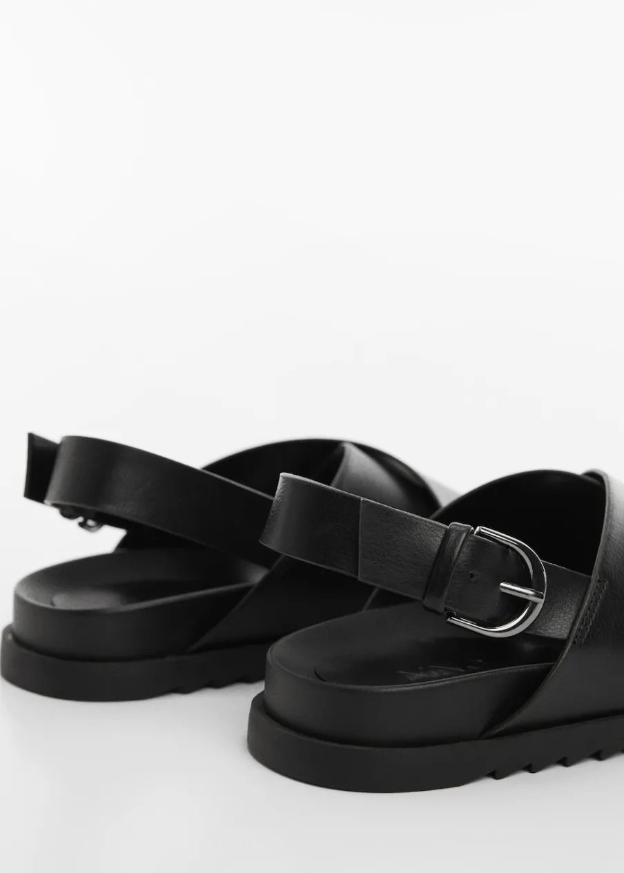 OpisModel zakładany. Model z paskami. Okrągły nosek. Rozporek z przodu. Płaska podeszwa. Zapięcie na klamrę.