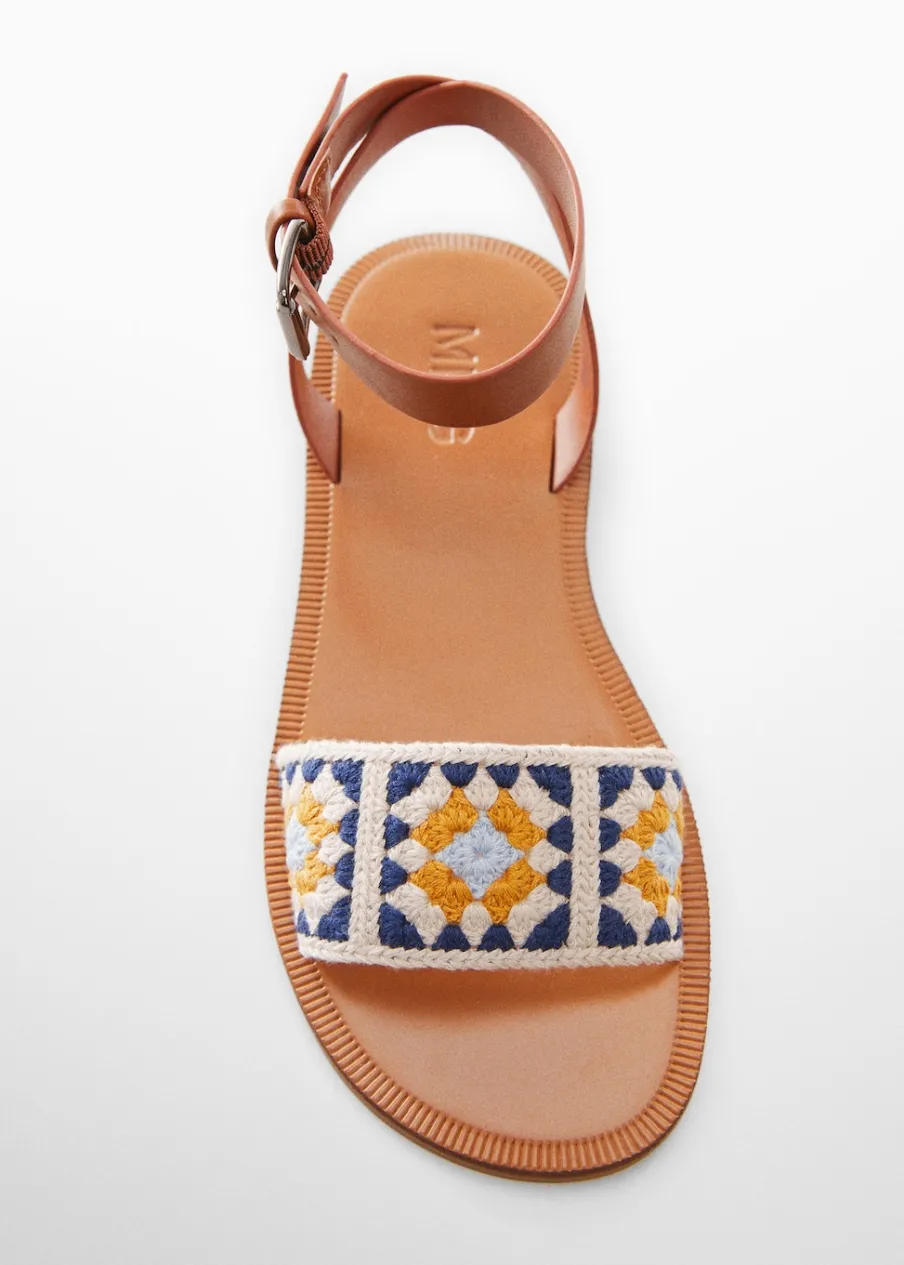 Haftowana tkanina. Rozporek z przodu. Okrągły nosek. Płaska podeszwa. PU. Zapięcie na klamrę.