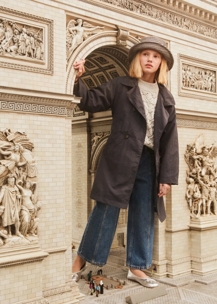 OpisTkanina bawełniana w dżinsowym stylu. Podwyższony stan. Model prosty. Ozdobne szwy. Pięć kieszeni. Fason culott…