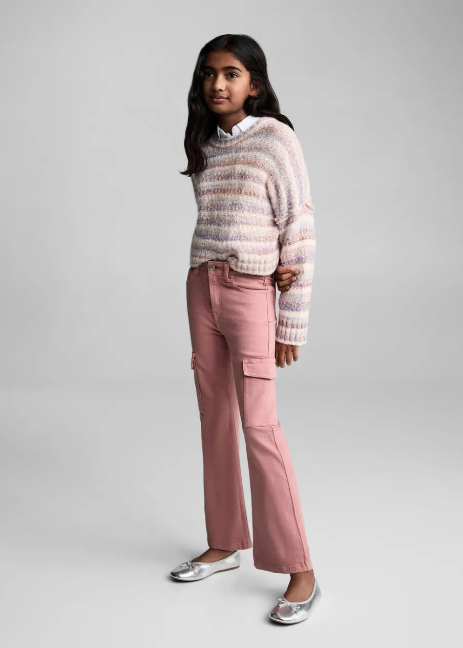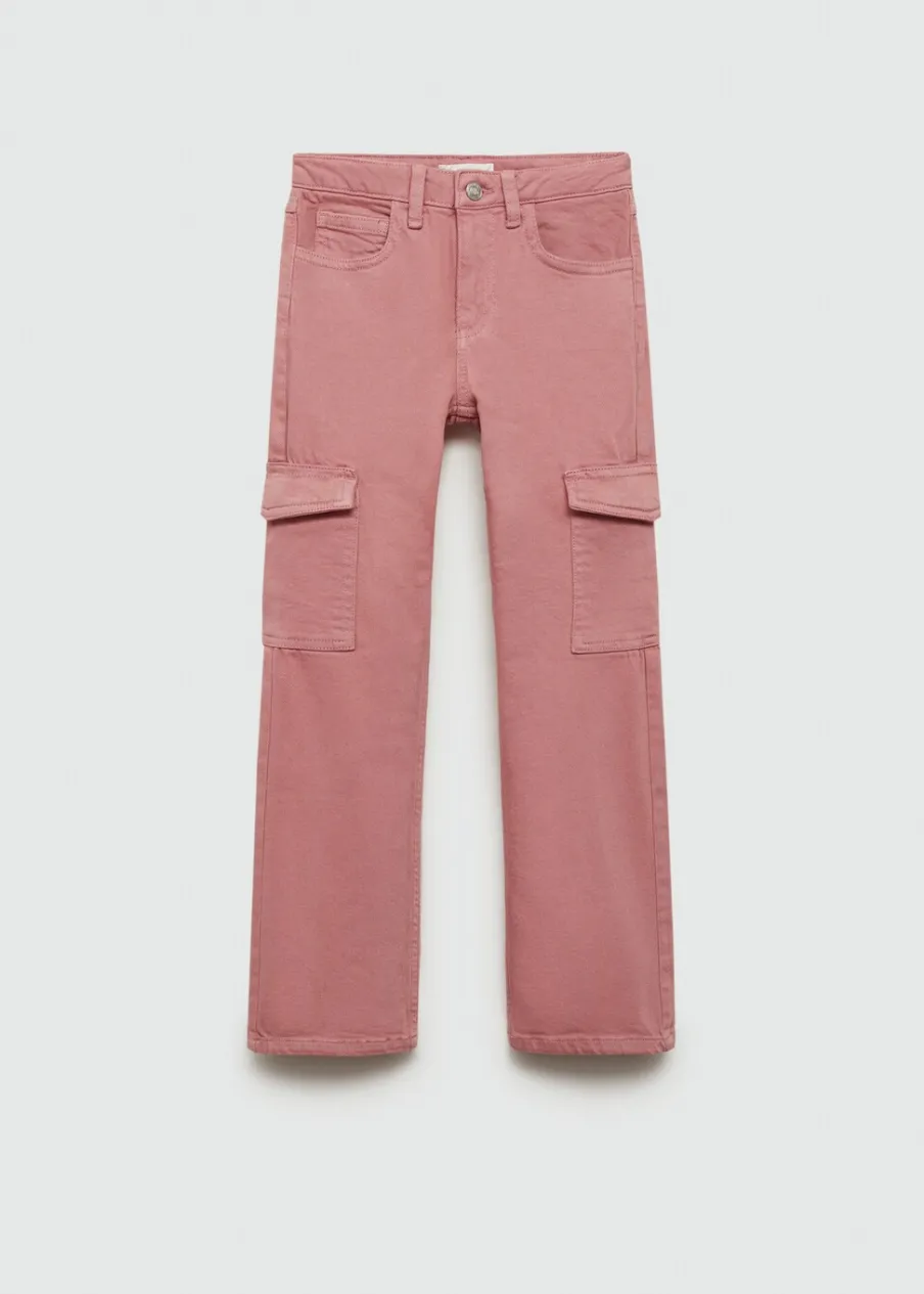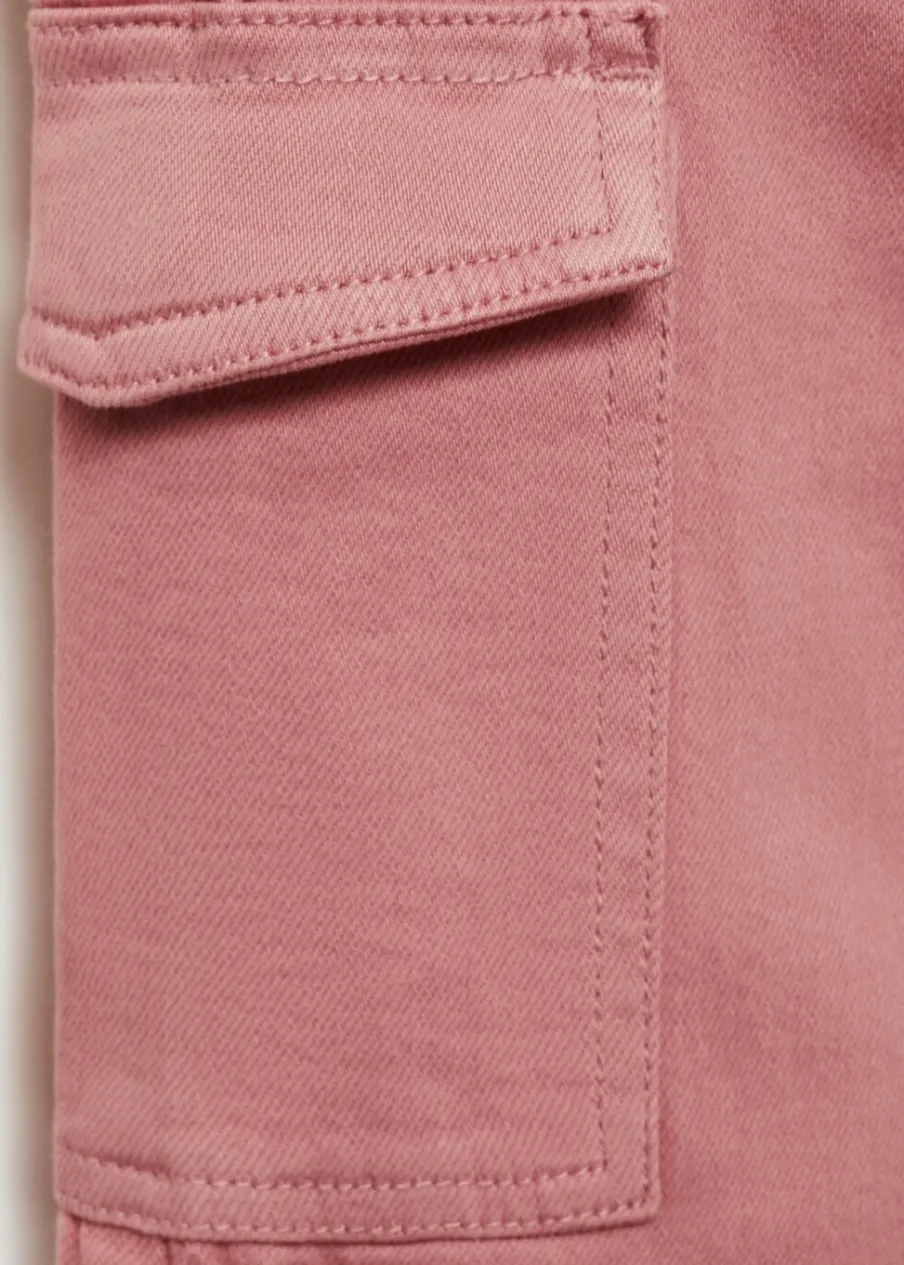 Tkanina bawełniana w dżinsowym stylu. Fason cargo. Pięć kieszeni. Dwie kieszenie boczne. Zapięcie na suwak i guzik.
