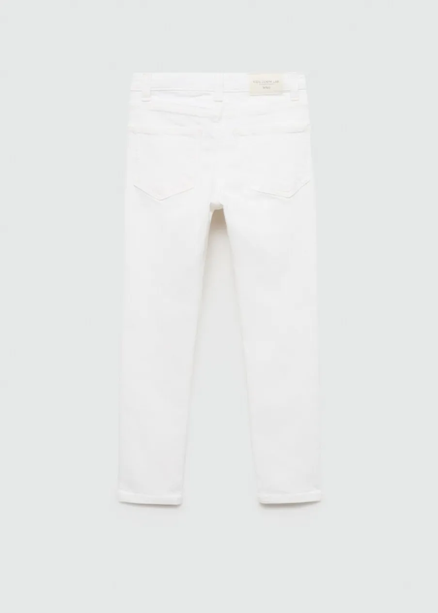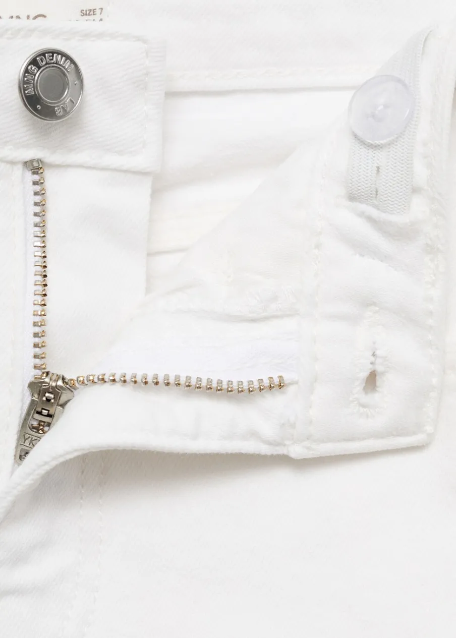Tkanina bawełniana w dżinsowym stylu. Model prosty. Model długi. Krój skinny. Postrzępione nogawki. Pięć kieszeni. Zapięcie na suwak i guzik.