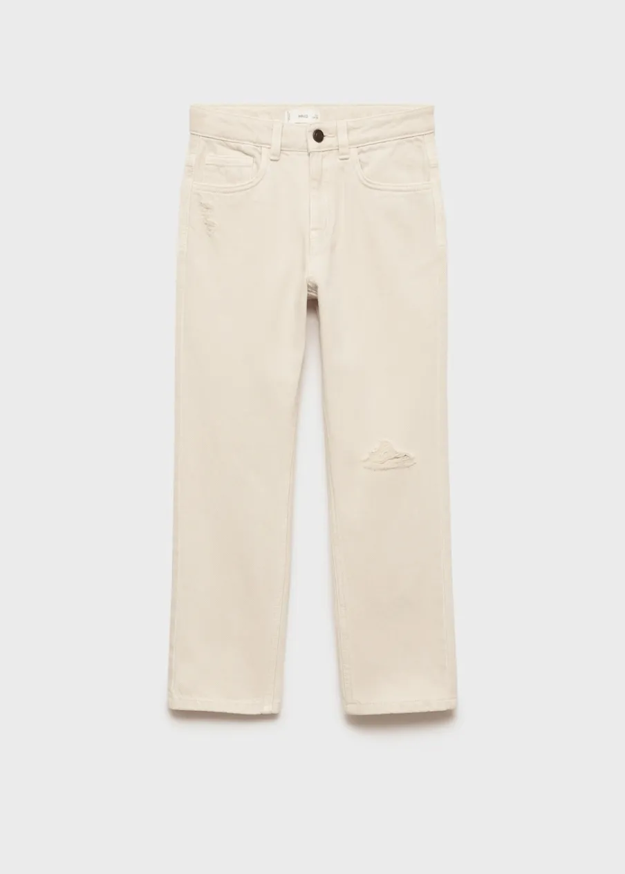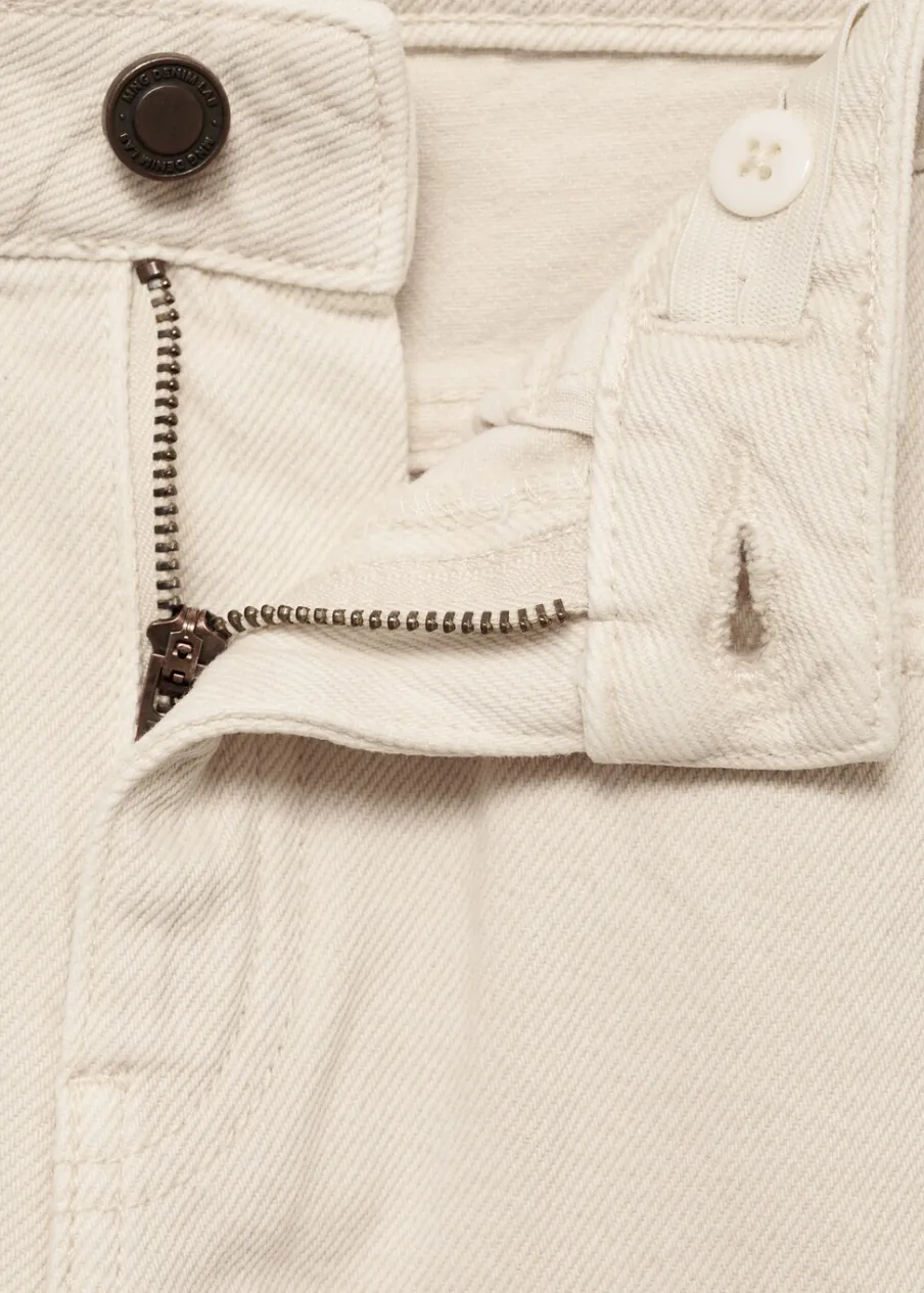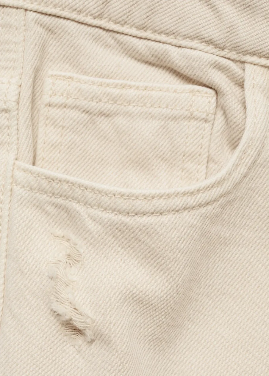 Tkanina bawełniana w dżinsowym stylu. Model prosty. Model długi. Ozdobne przetarcia. Pięć kieszeni. Zapięcie na suwak i guzik.