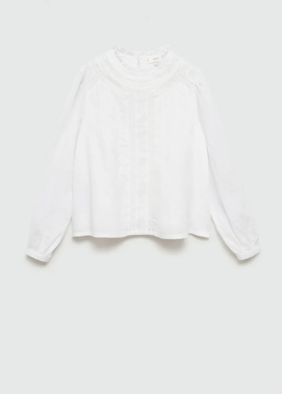 Opis100% bomull. Model prosty. Haft na kołnierzyku. Długi rękaw. Zapięcie na guzik z tyłu. Haftowany motyw.