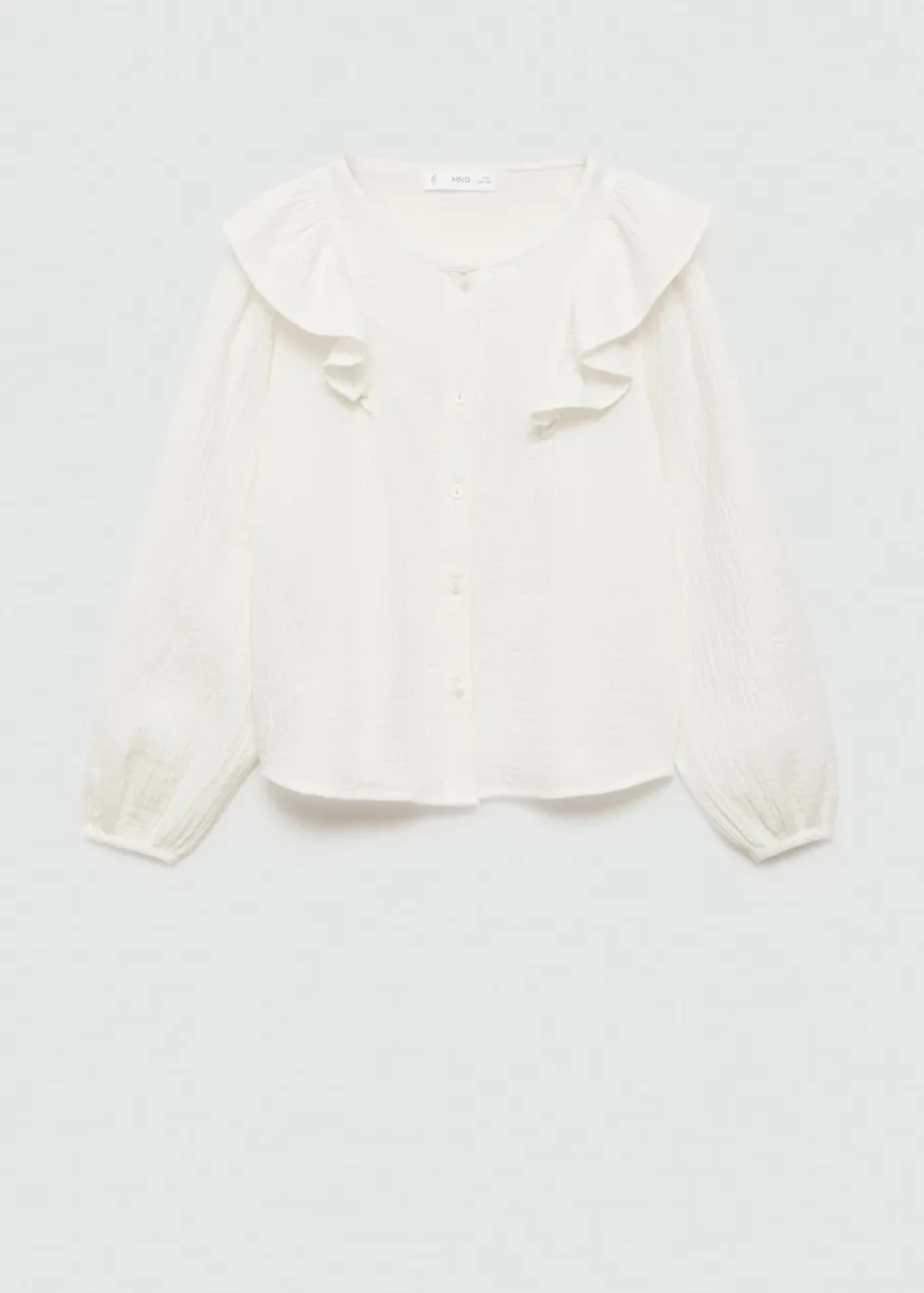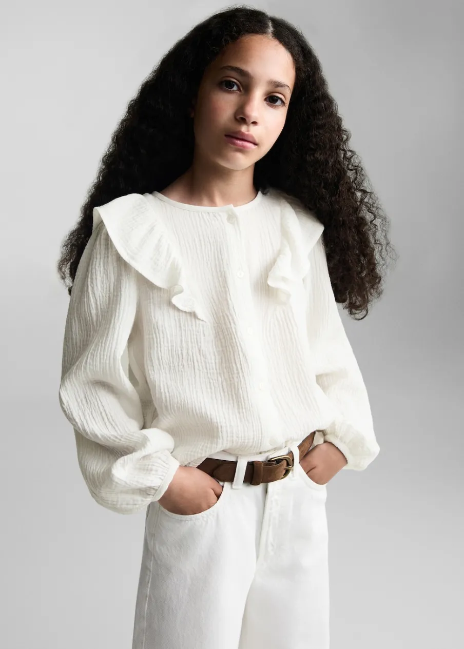 Kolekcja Powrót do szkoły. 100% bomull. Kreszowana tkanina. Model prosty. Okrągły dekolt. Z falbanami. Długi rękaw. Zapięcie na guziki z przodu.