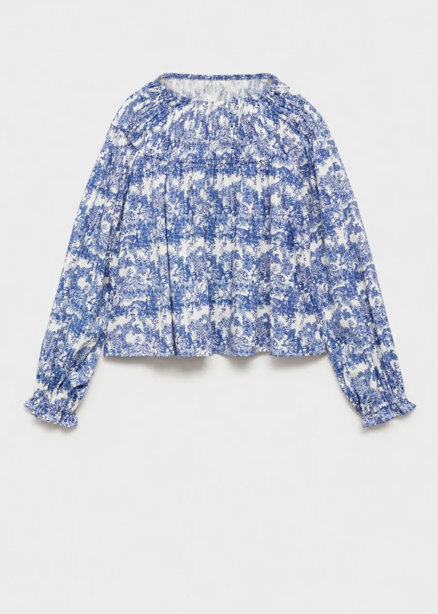 Tkanina z bawełną. Model prosty. Zwierzęcy deseń. Okrągły dekolt. Marszczenie na dekolcie. Długi rękaw. Elastyczne wykończenia. Nadruk.