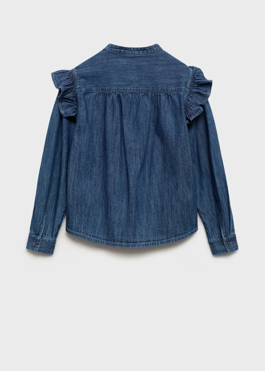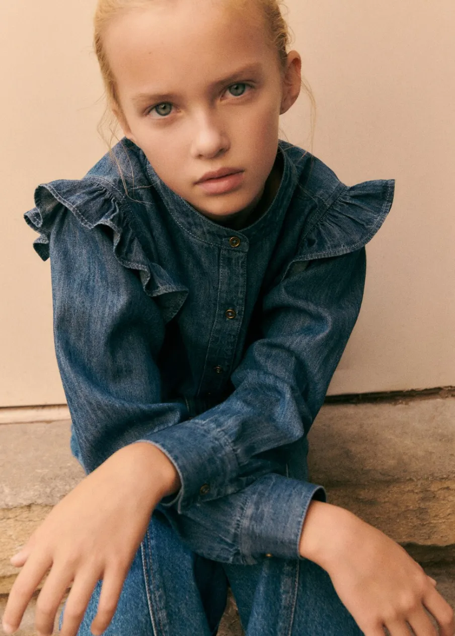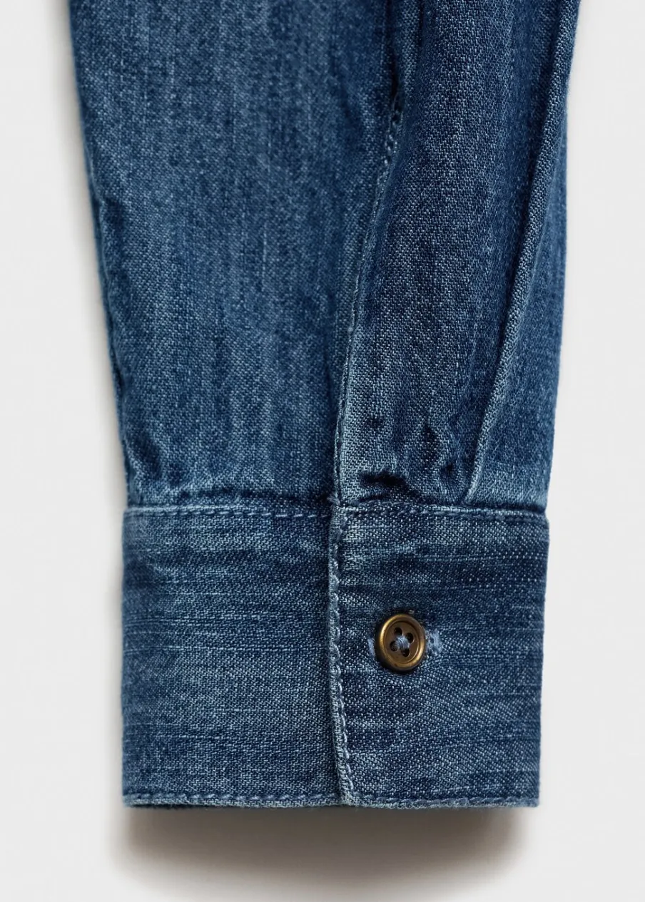 Tkanina bawełniana w dżinsowym stylu. Model prosty. Okrągły dekolt. Długi rękaw z zapięciem na guziki. Krój regular. Zapięcie na guziki.