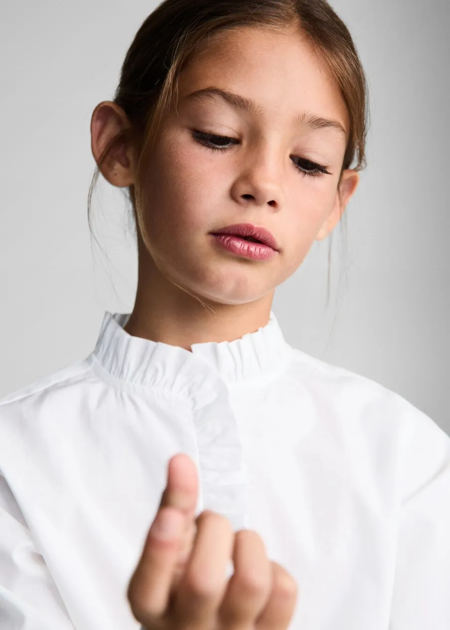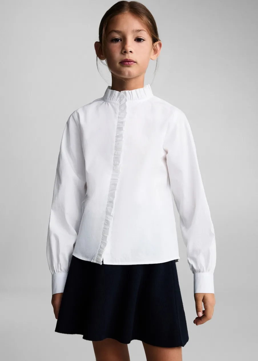 Kolekcja Powrót do szkoły. 100% bomull. Model prosty. Falbana z tyłu. Falbanki pod szyją. Długi rękaw z guzikami na mankietach. Okrągły dekolt. Zapięcie z przodu.